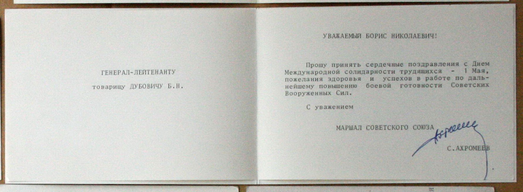 Открытка с вложенным типографским листком.