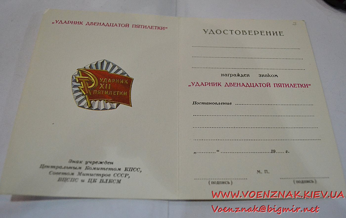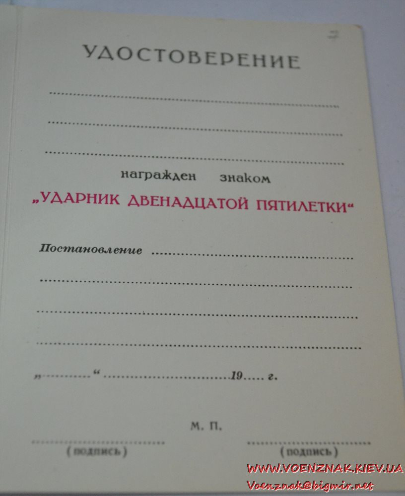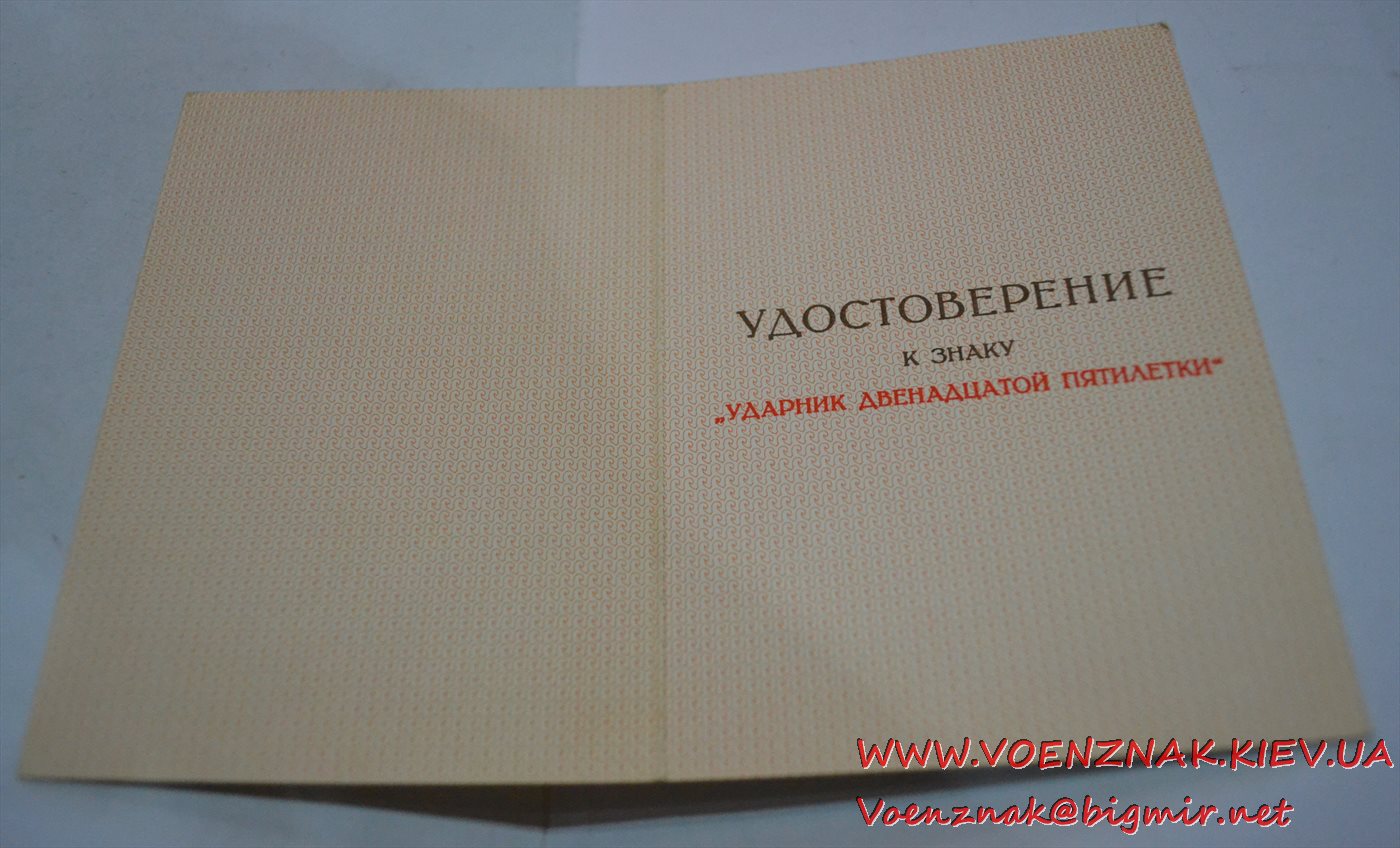 Незаполненное удостоверение к знаку "Ударник двенадцатой пятилетки"