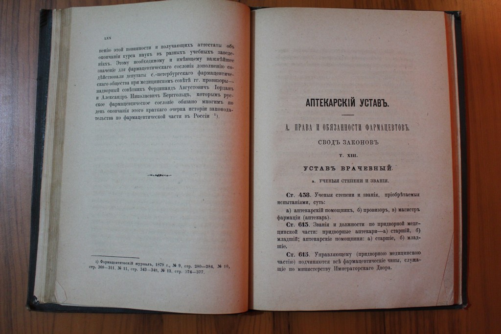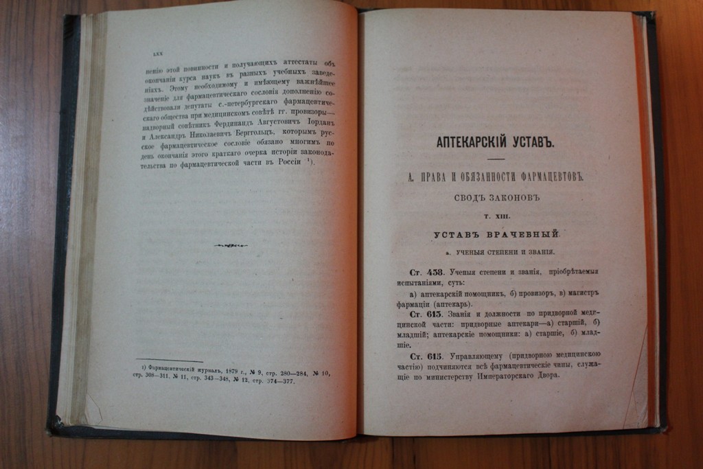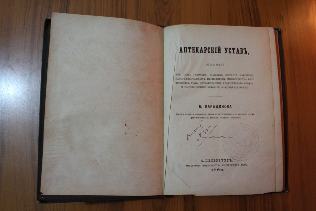 Н. В. Варадинов "Аптекарский устав" СПБ. 1880 г.Типография министерства внутренних дел. извлеченный из Свода законов полных собраний законов, распубликованных циркуляров Министерства внутренних дел, постановлений Медицинского совета и разъясняемый историей законодательства. Всё листы на месте. Блок крепкий. Сохранность отличная. До военный библиотечный штамп на титуле. Семнадцатая страница чиста. П р е д л а г а й т е.