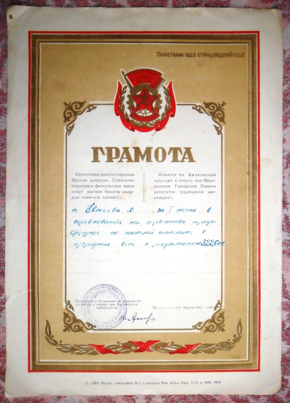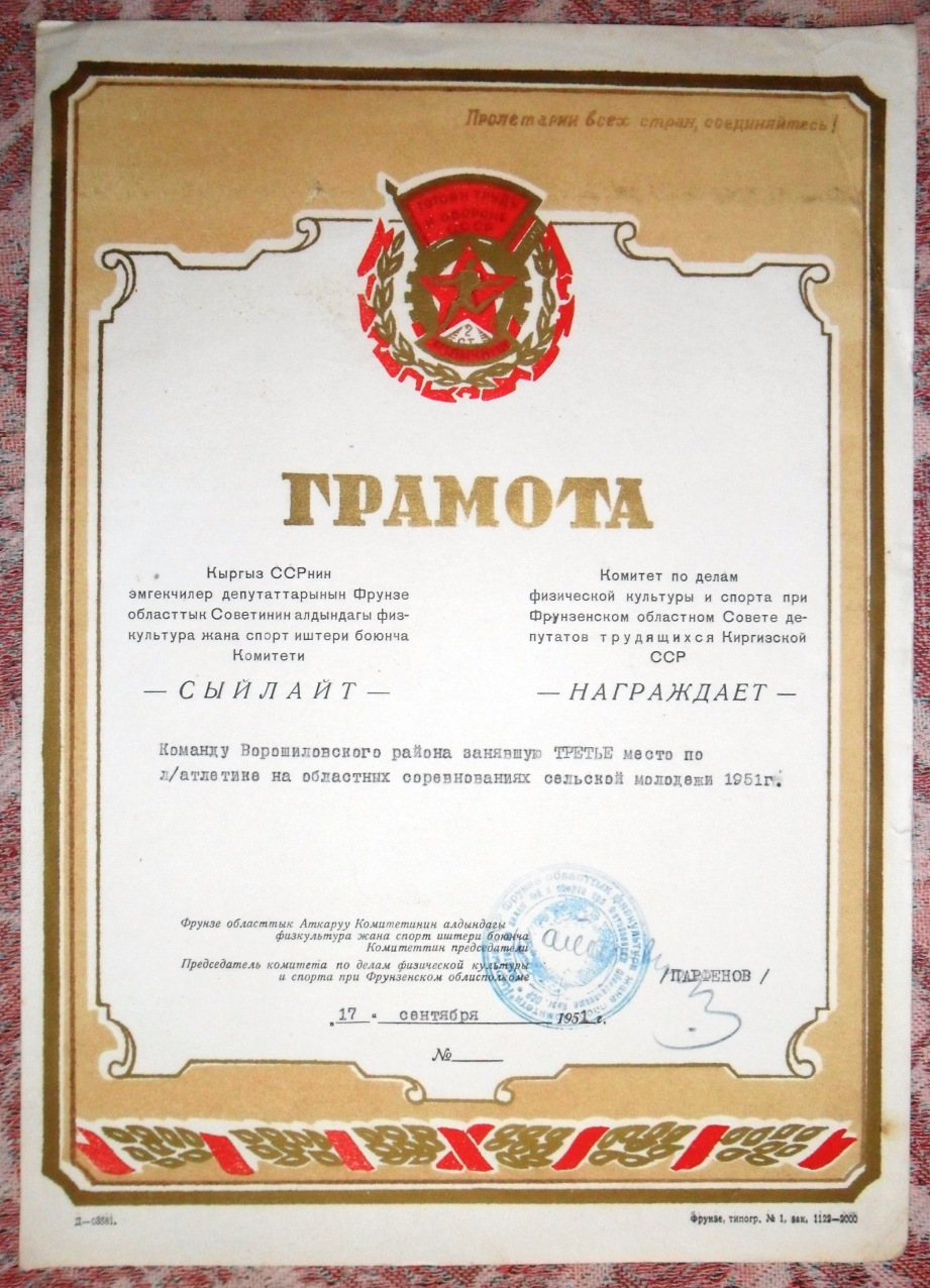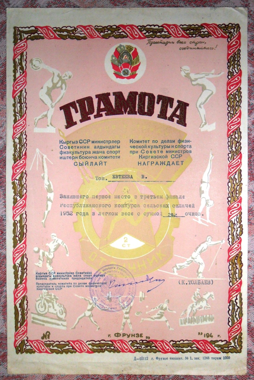 Тиражи грамот достаточно небольшие: киргизских - от 300 до 3000 экз., молдавских - от 2000 до 10000 экз. (кроме одной, у которой тираж 100 тыс. экз.)