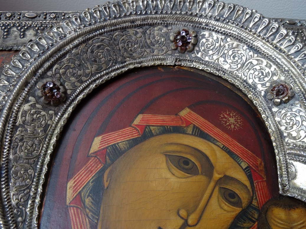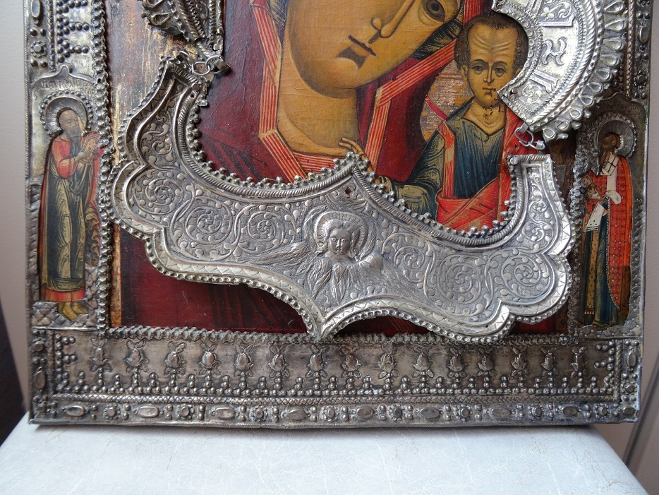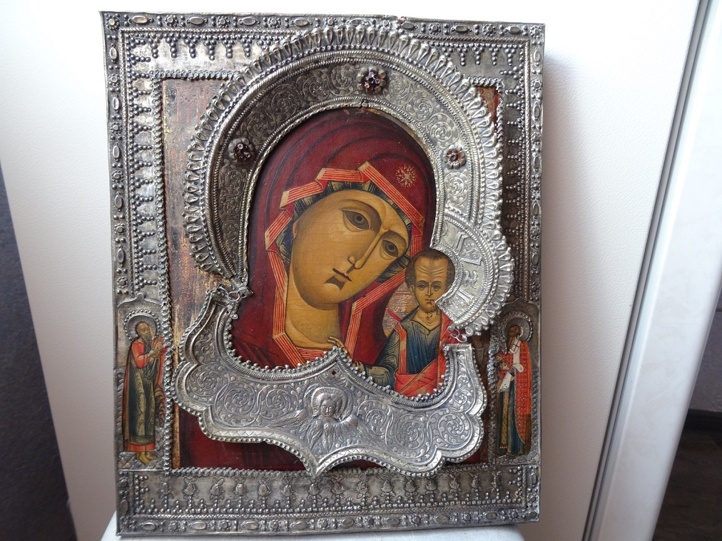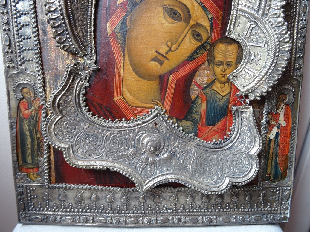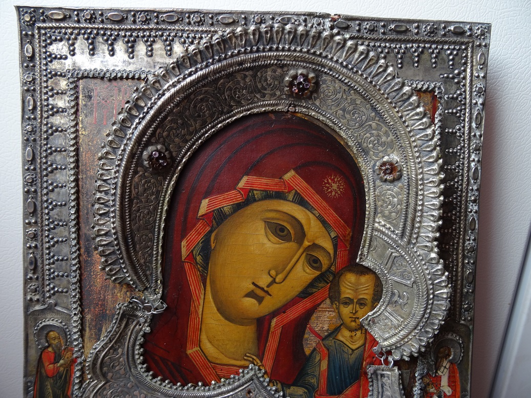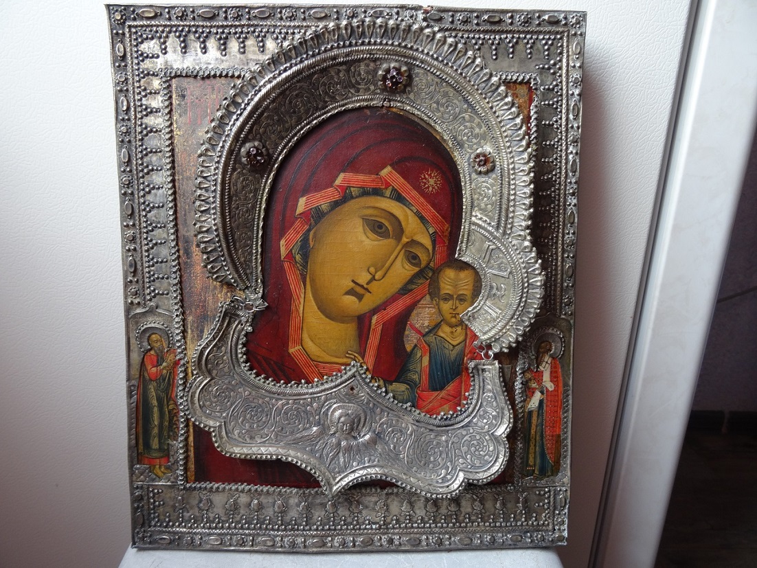 В продаже икона Казанской Божьей Матери, оклад серебро 84 пр. Размер 26 х 31 см. Клейма на окладе, венце и цате. Мпц 150 т.р. Блиц 200 т.р.