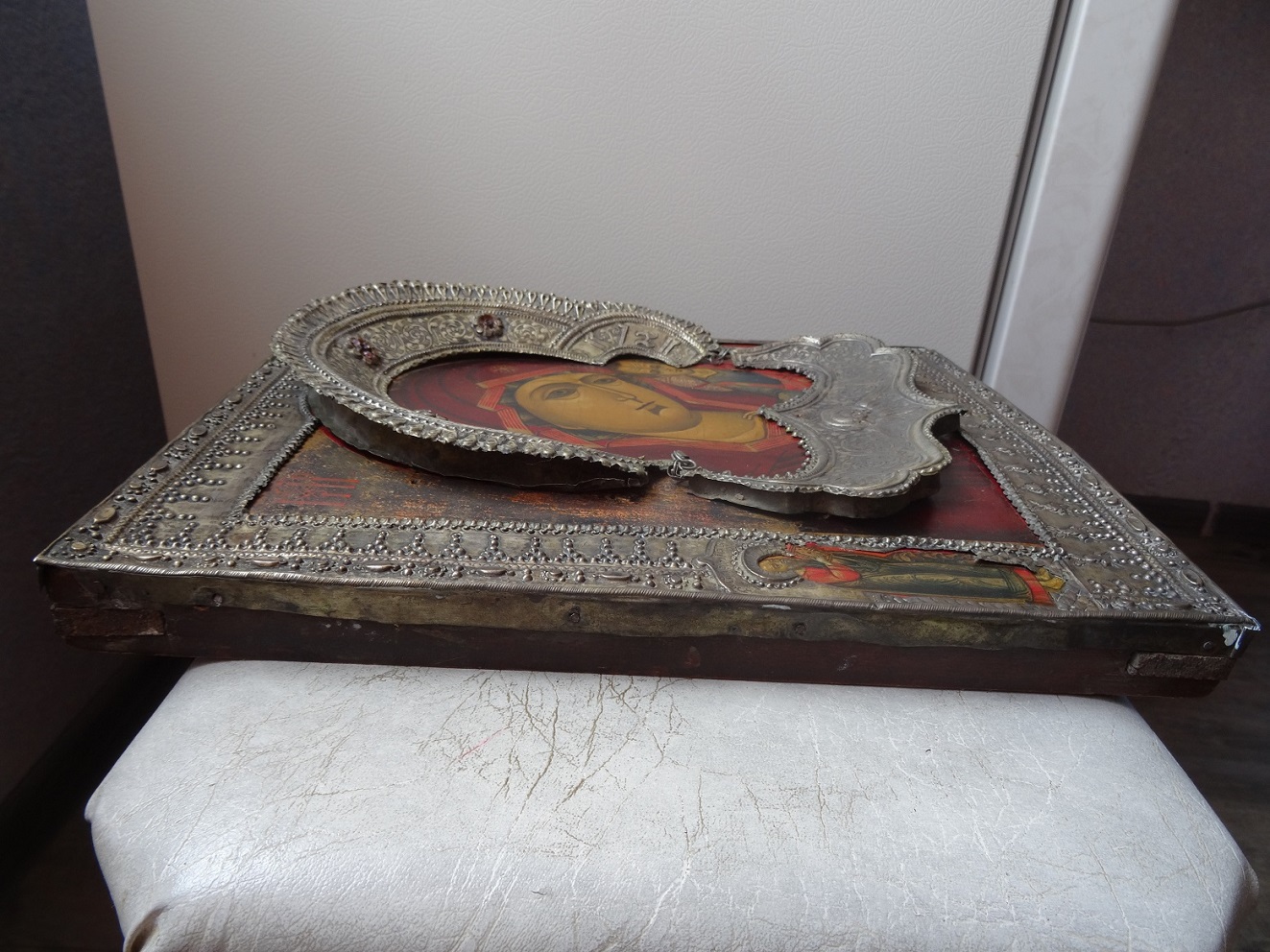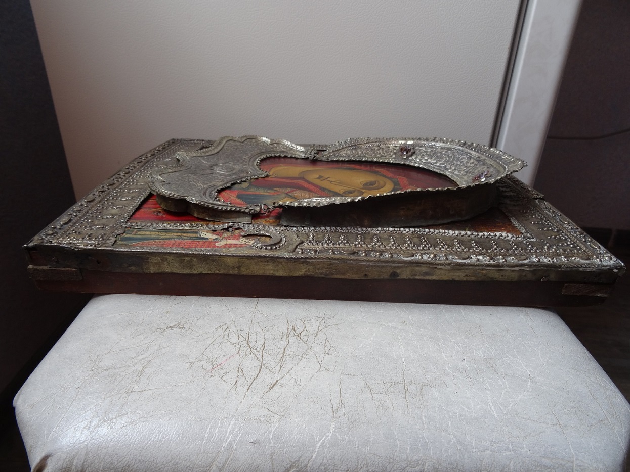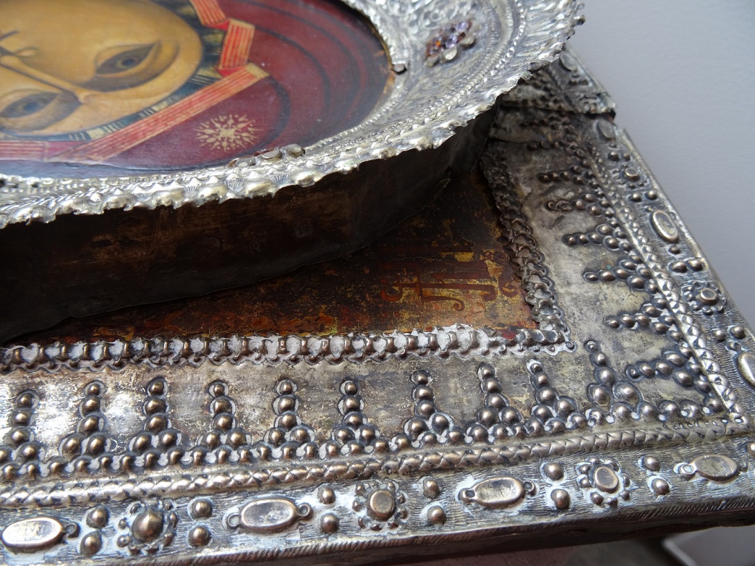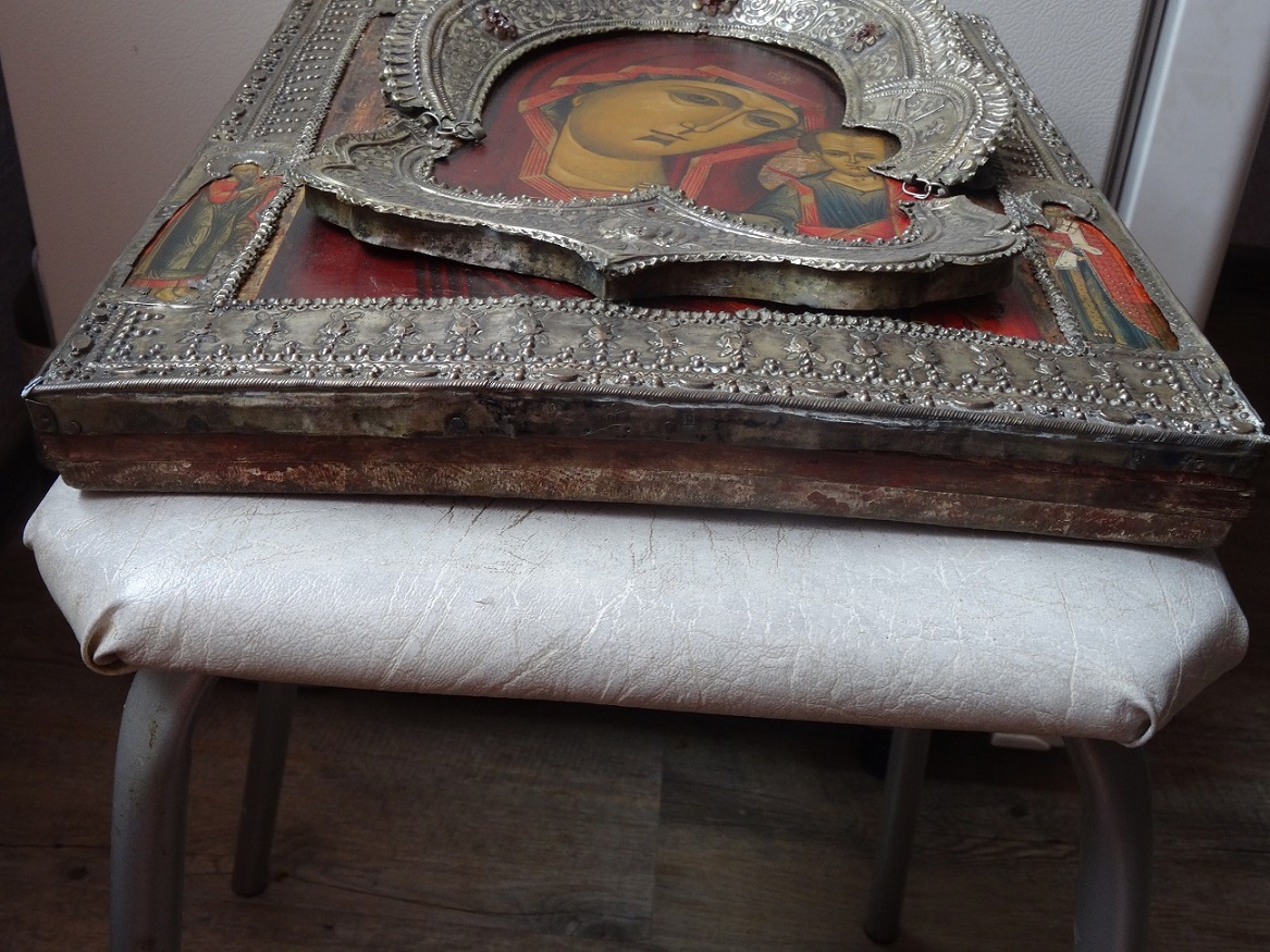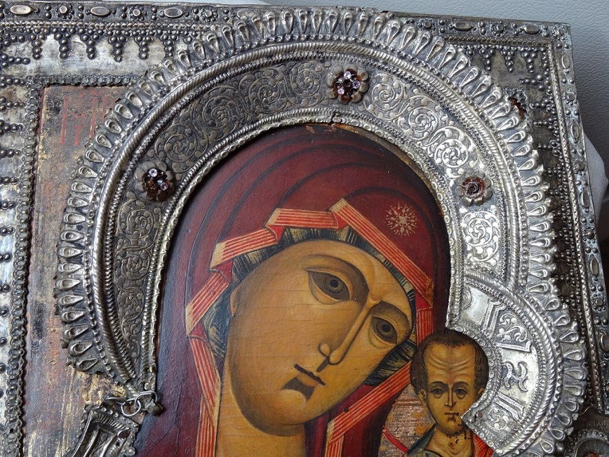В продаже икона Казанской Божьей Матери, оклад серебро 84 пр. Размер 26 х 31 см. Клейма на окладе, венце и цате. Мпц 150 т.р. Блиц 200 т.р.
