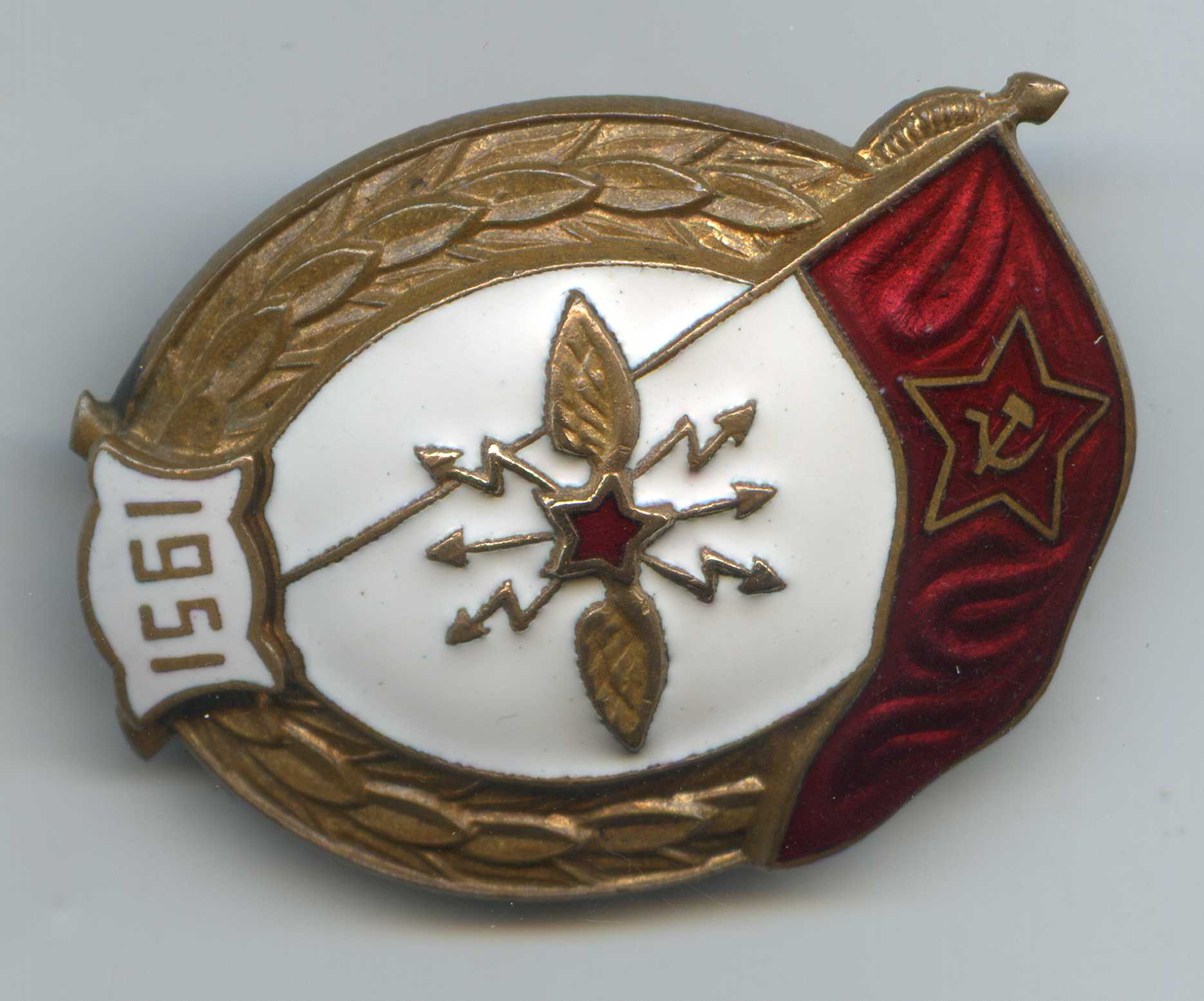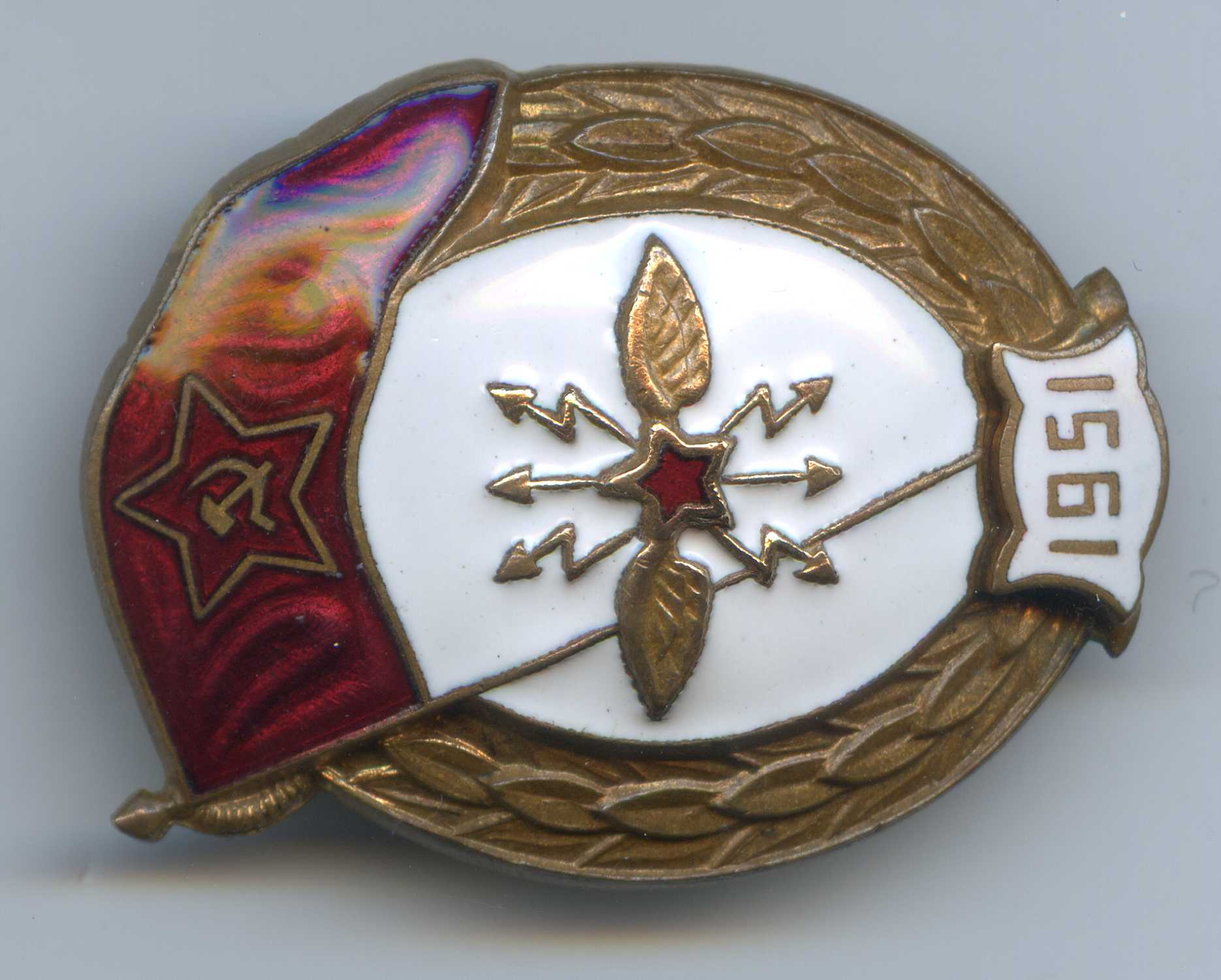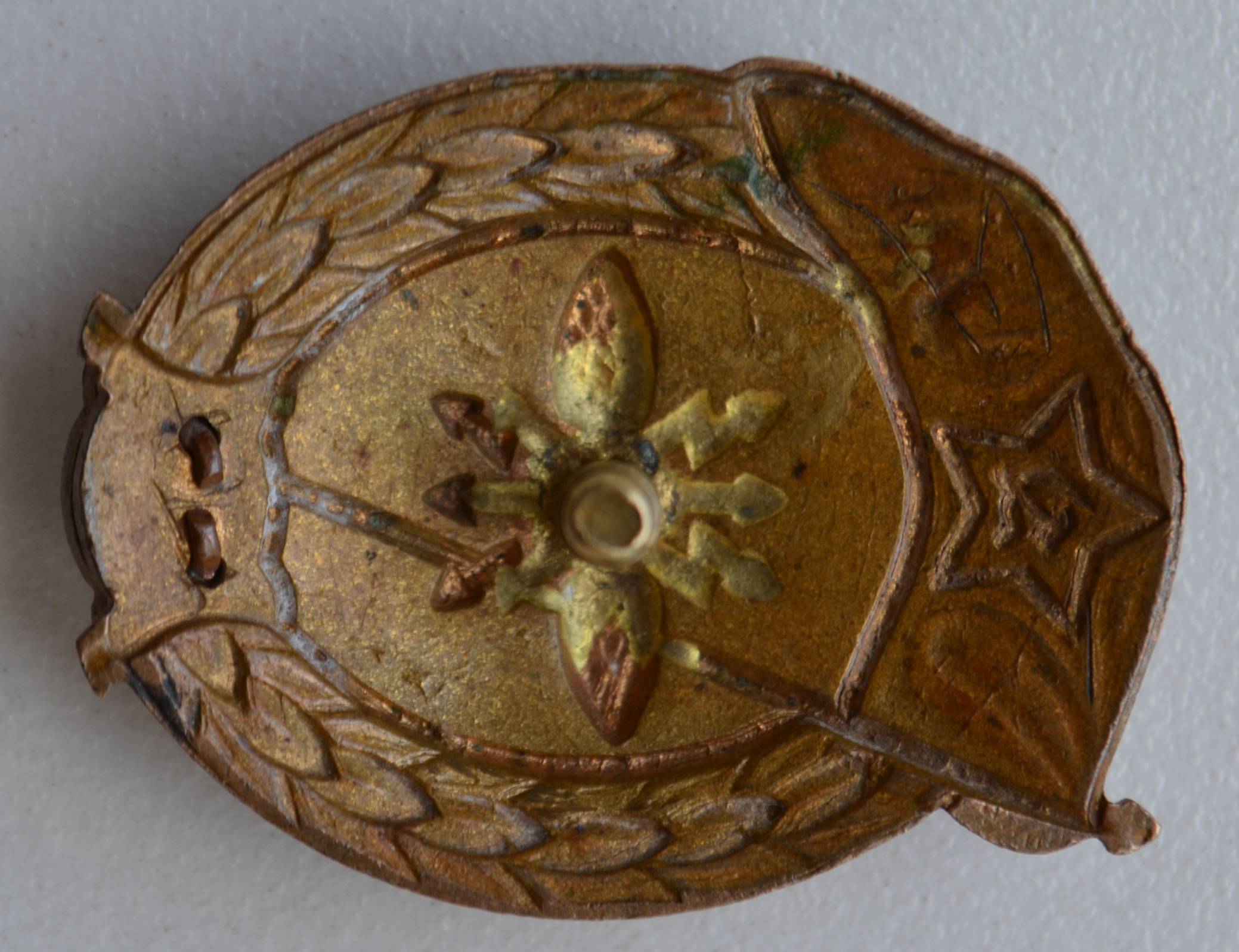 Мне знак нравится. Знак исполнен методом штамповки. На нем присутствует фирменная пайка и винт МТХ, характерный для МТХ способ подрезания усов у шильды, остатки позолоты.