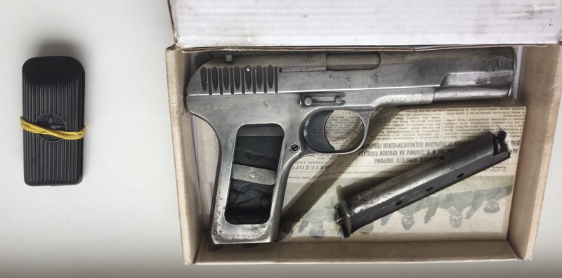 Пачка патронов:500 руб ВТОРАЯ ФИШКА ПИСТОЛЕТ КАК С ЧЕРДАКА КАК С ДЕДУШКИНОИ НЫЧКИ ОН НЕ ПЕРЕВОРОНЕН ОН ТАКОИ КАКОИ ДОЛЖЕН БЫТЬ ЗА 85 лет с затертои до плеши рукояткои и счесанной воронилкои он прекрасен как слеза младенца.