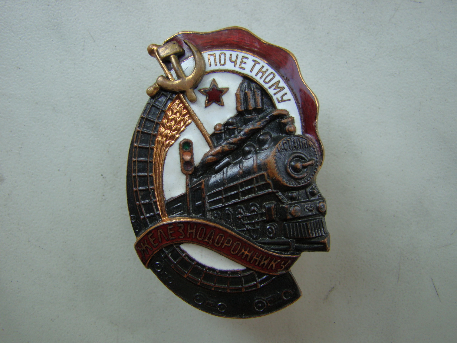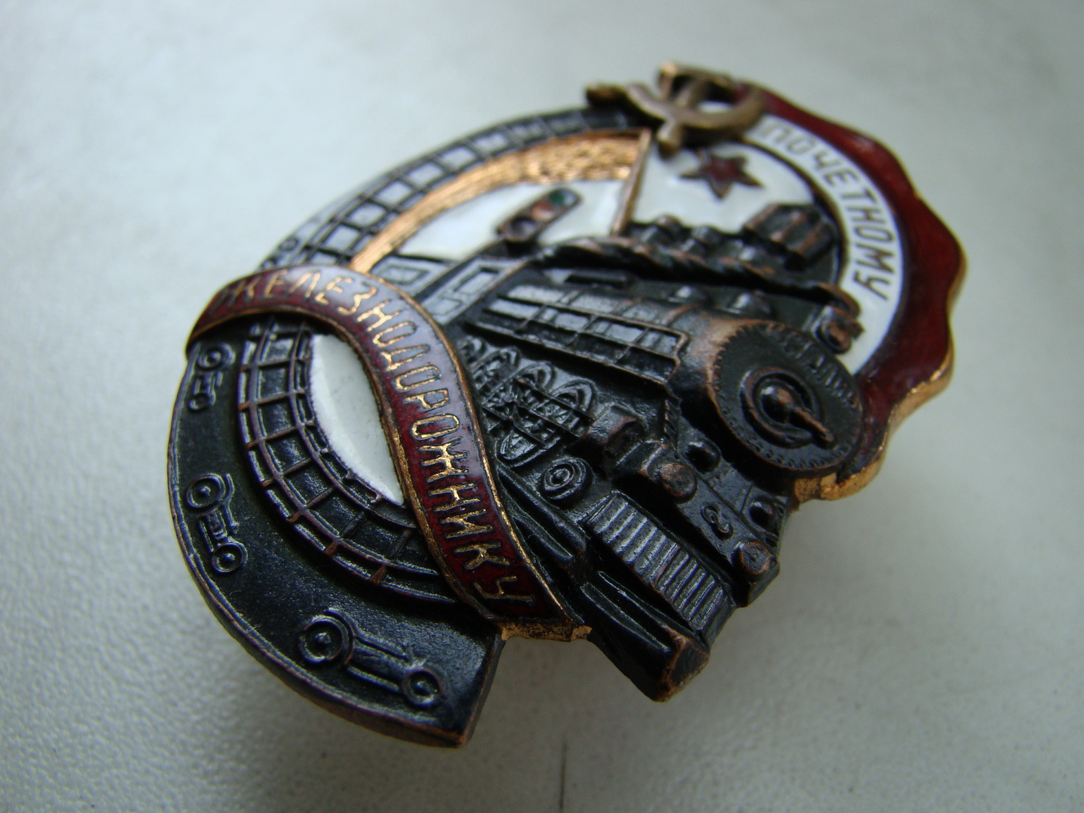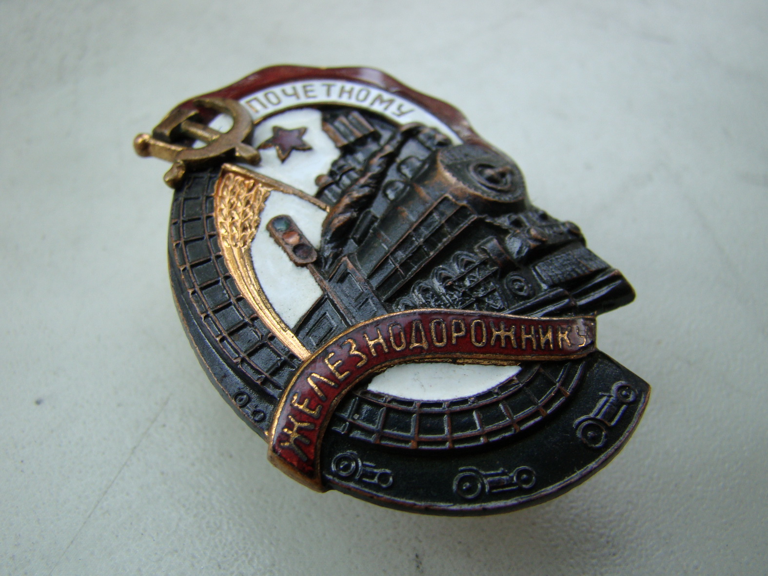 Знак "Почетному железнодорожнику" (бронза, гор/эмали, винт).