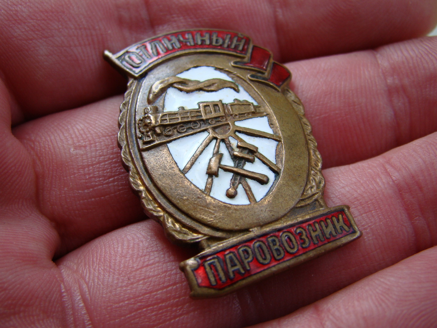 Знак "Отличный паровозник" (бронза, гор/эмаль).