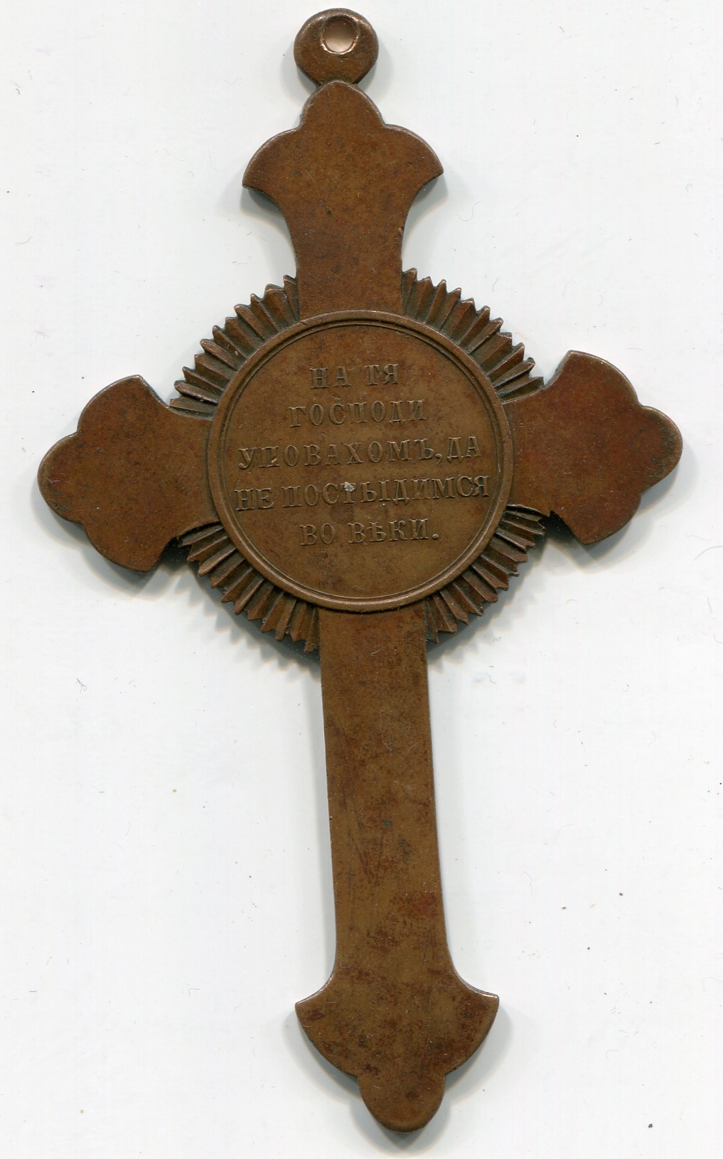 Надпись на оборотной стороне креста «На Тя, Господи, уповахом, да не постыдимся во веки»