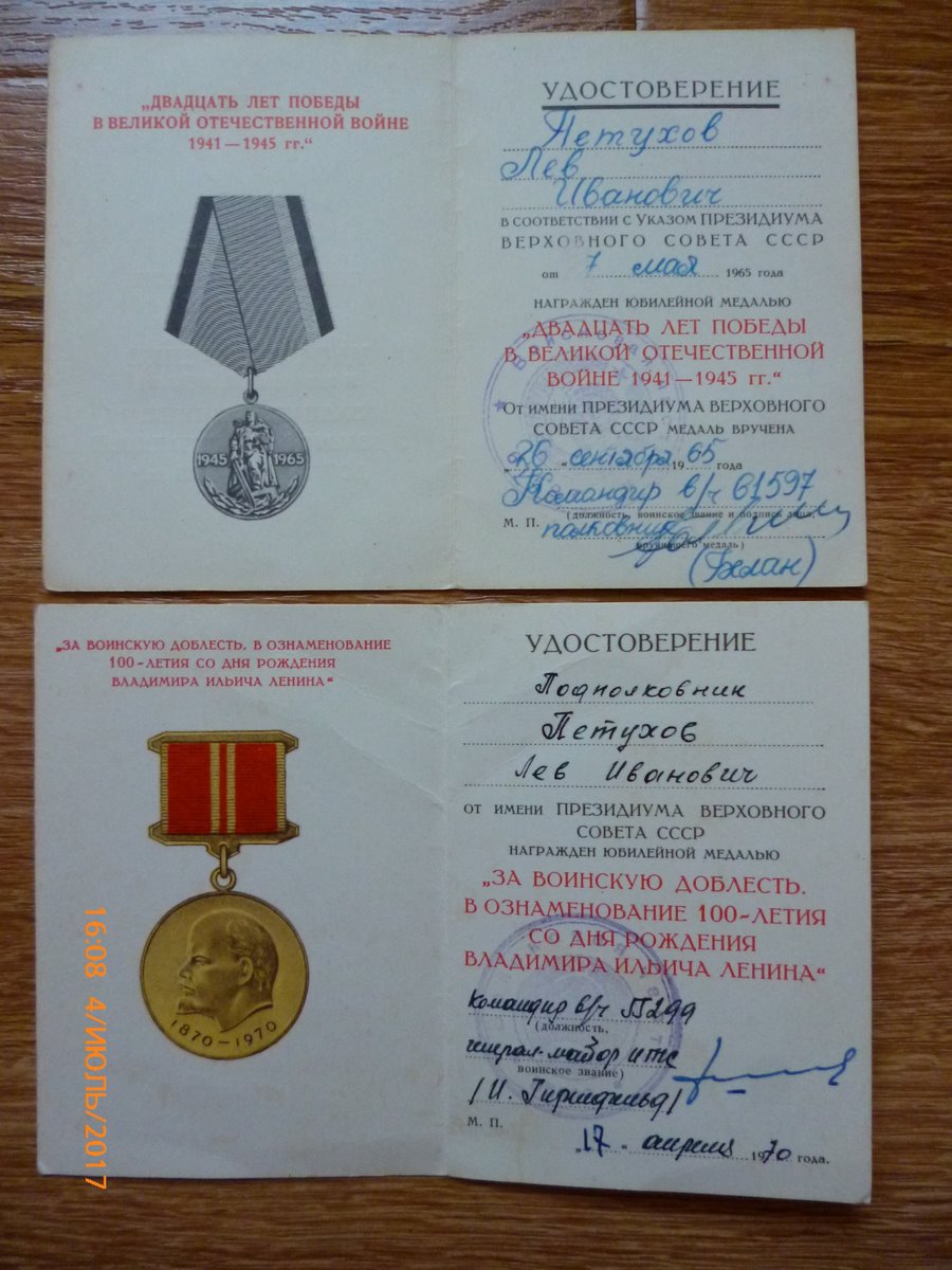 Комплект документов 20 лет победы,60,70 лет ВС ,100 лет ВИЛ (ВД) !!! ДОСААФ!!!