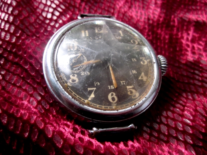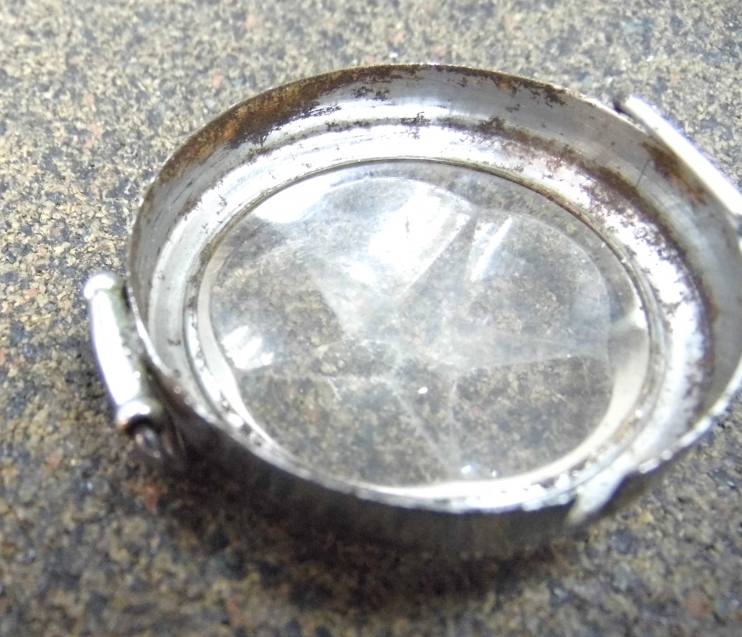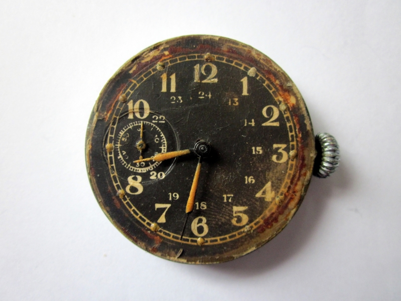 Фотоциферблат с люминофором . Подобные применялись для часовых взрывателей мин. Толстое, хрустальное, граненое звездой стекло.
