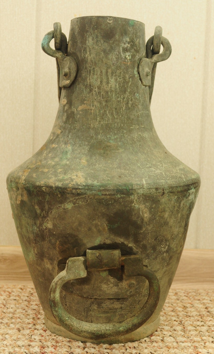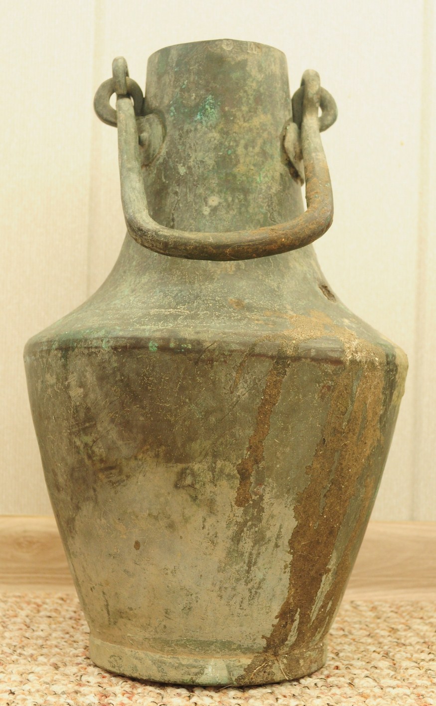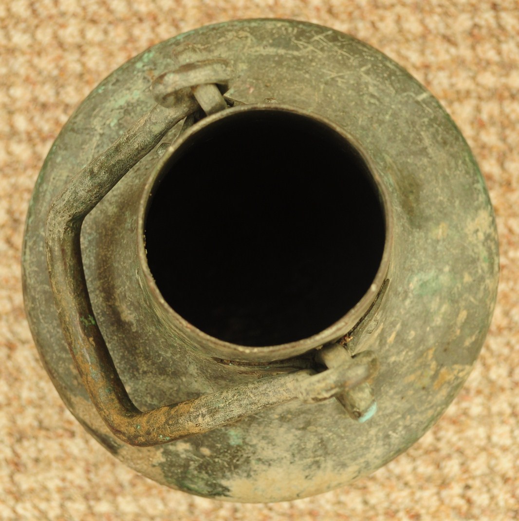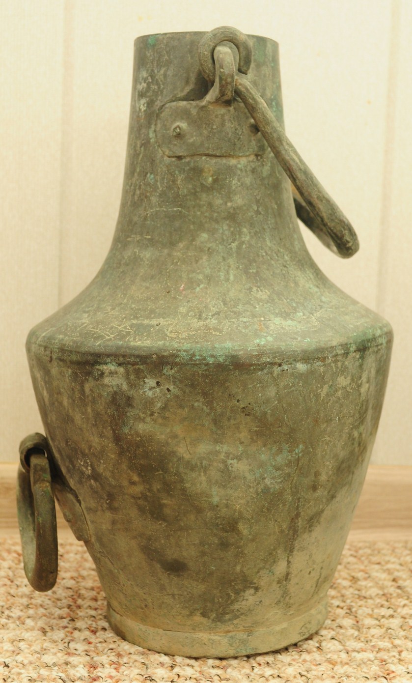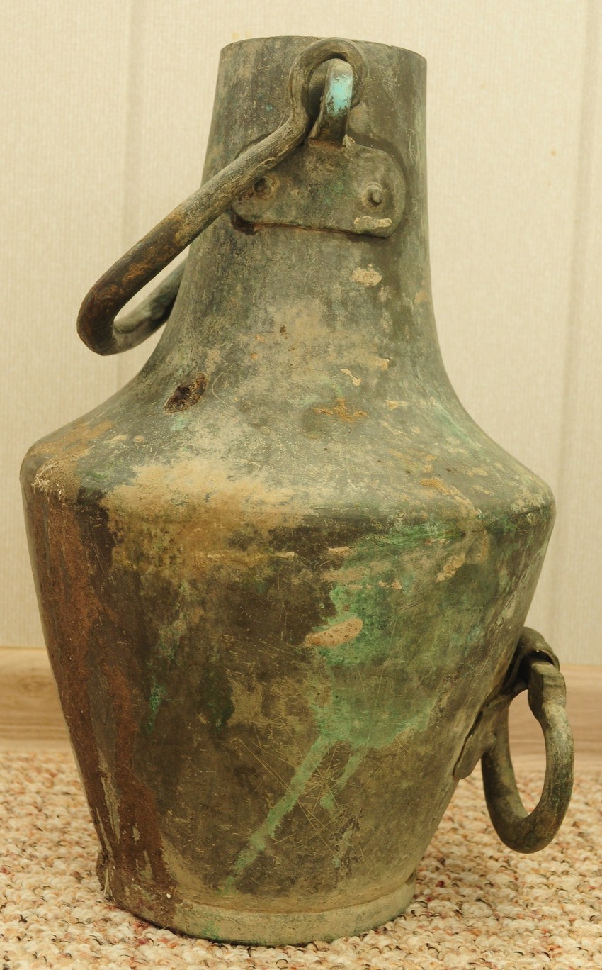 Объем - 6 литров = 1/2 ведра. Высота - 35см. Металл - медь.