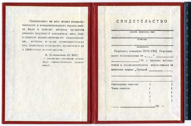 Свидетельство победителю в соревновании "Лучший по профессии"