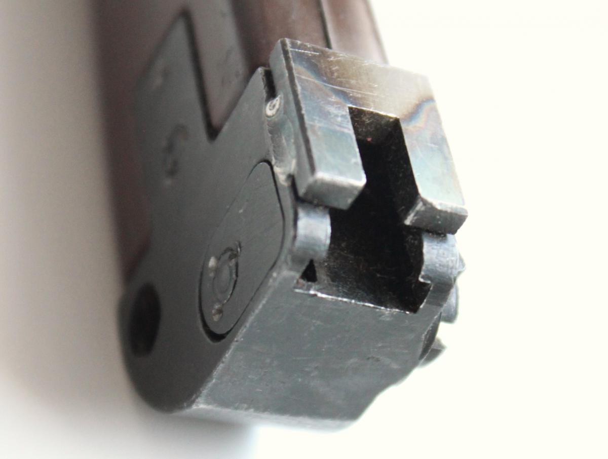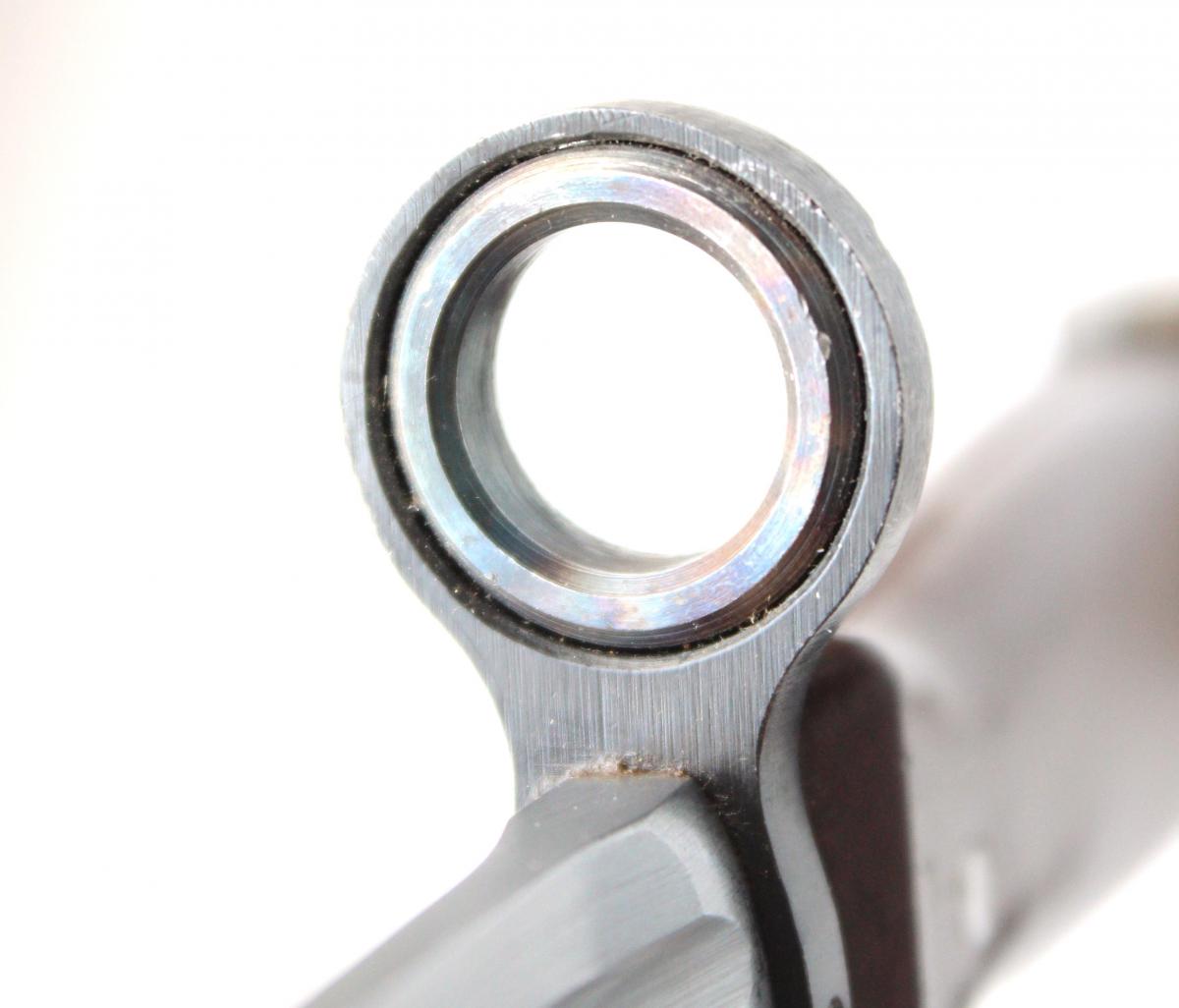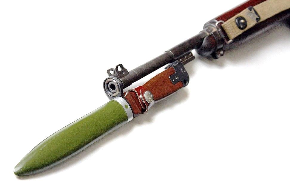 Переделка заключается в установке переходников для крепления на карабине М1 (втулка меньшего диаметра в наствольное кольцо, пластина на паз штыкоприемника).