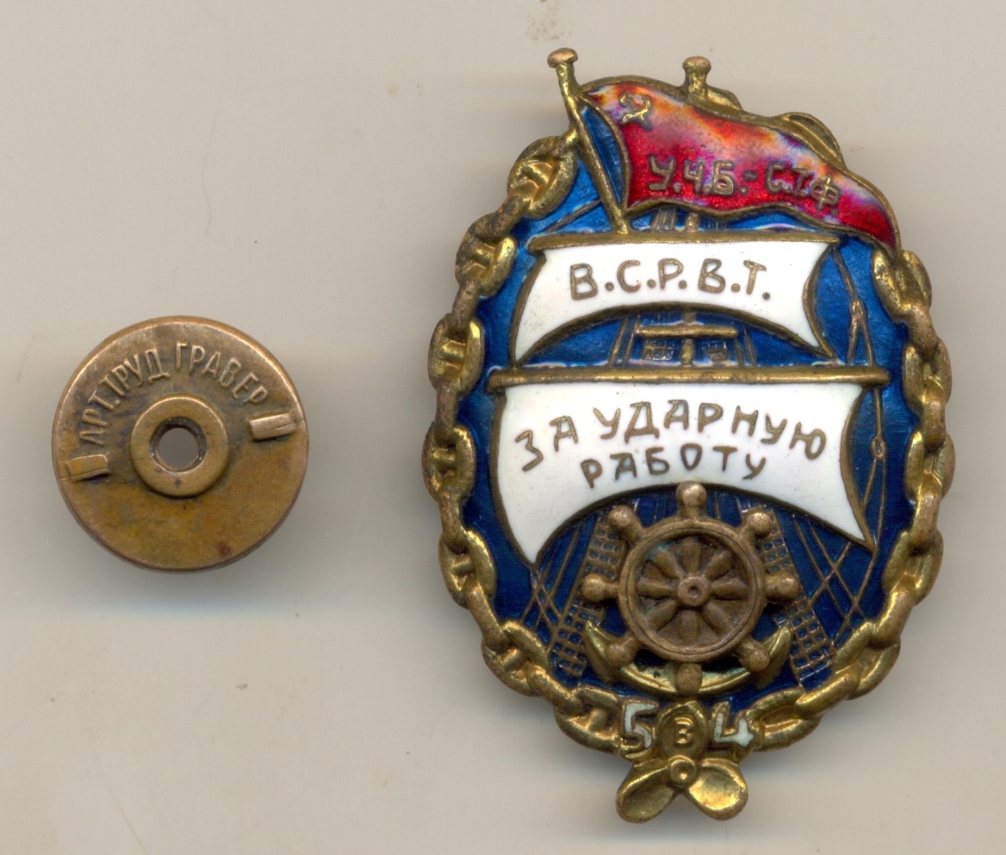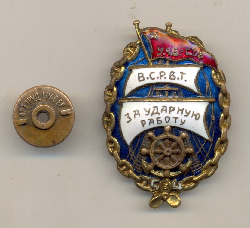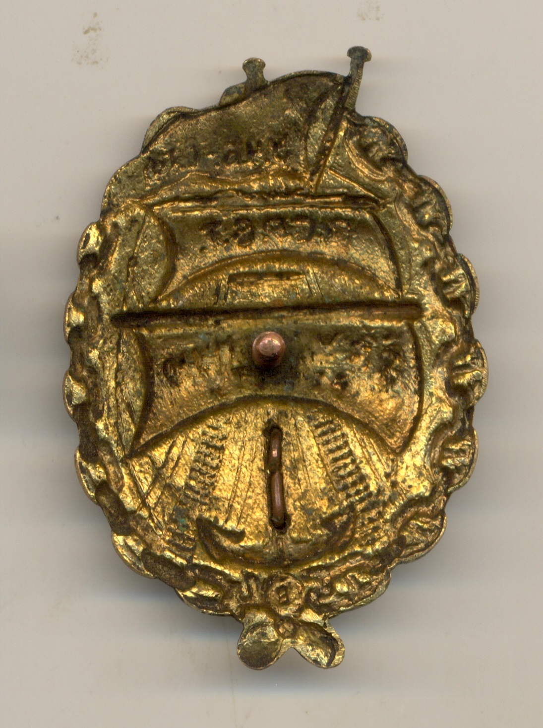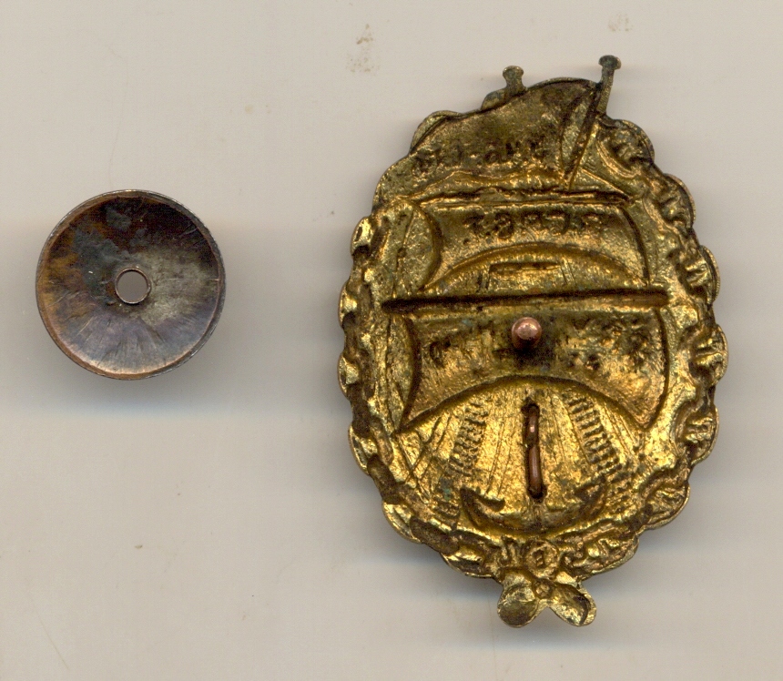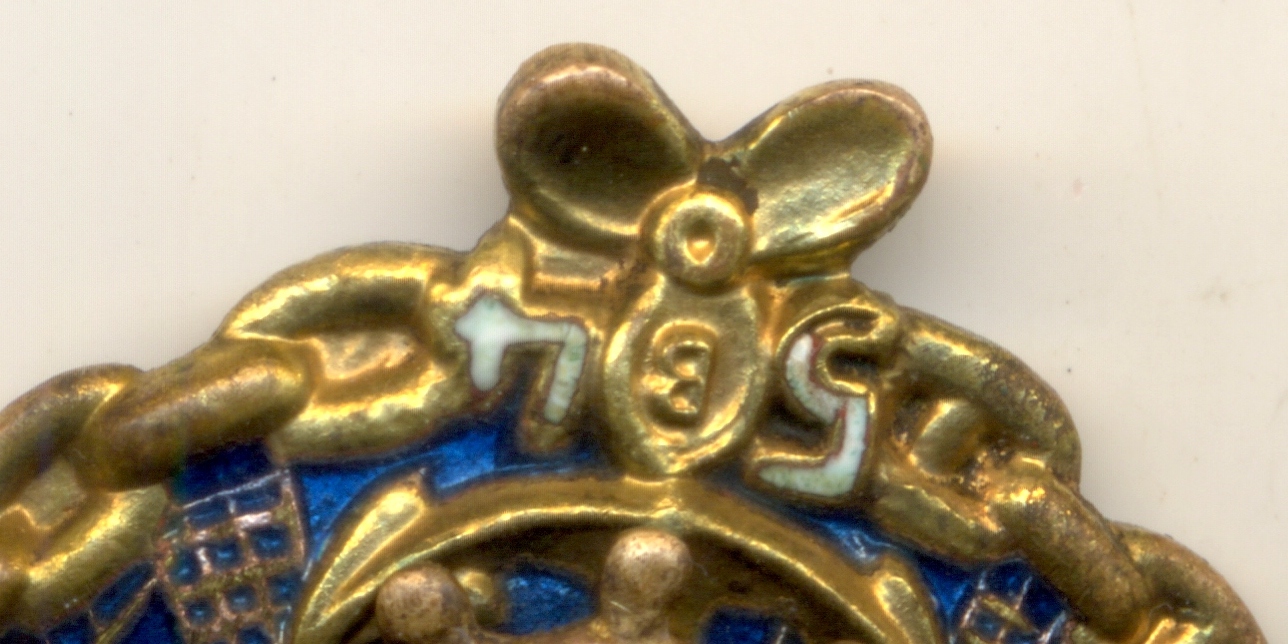 Ваш знак отличается от знака в ссылке, которую Вы поставили для сравнения, а больше похож на этот знак, без дырок в штурвале, и с так же загнутым вправо окончанием древка. О подлинности/не подлинности судить затрудняюсь.
