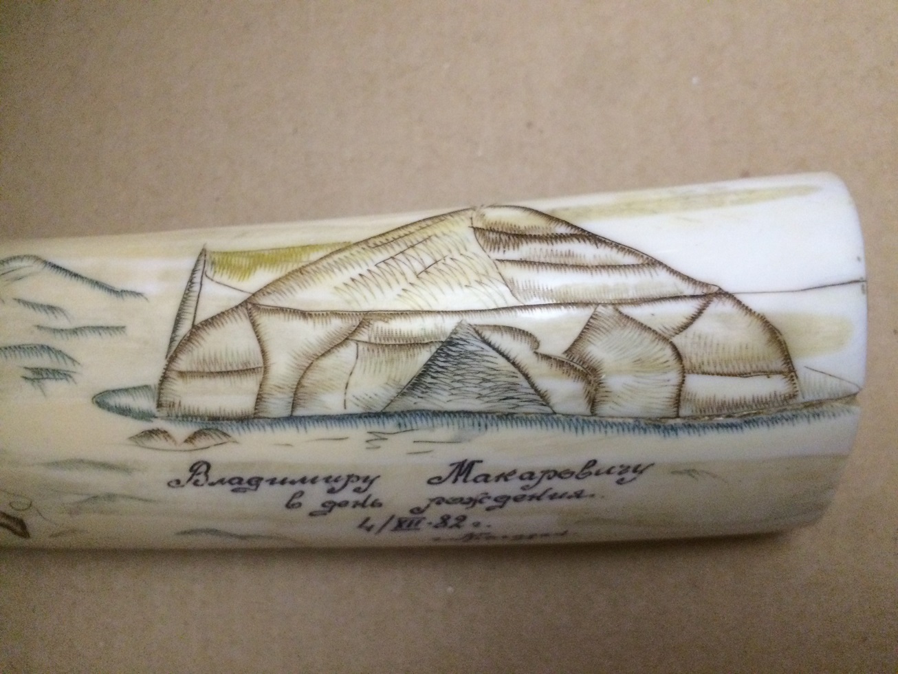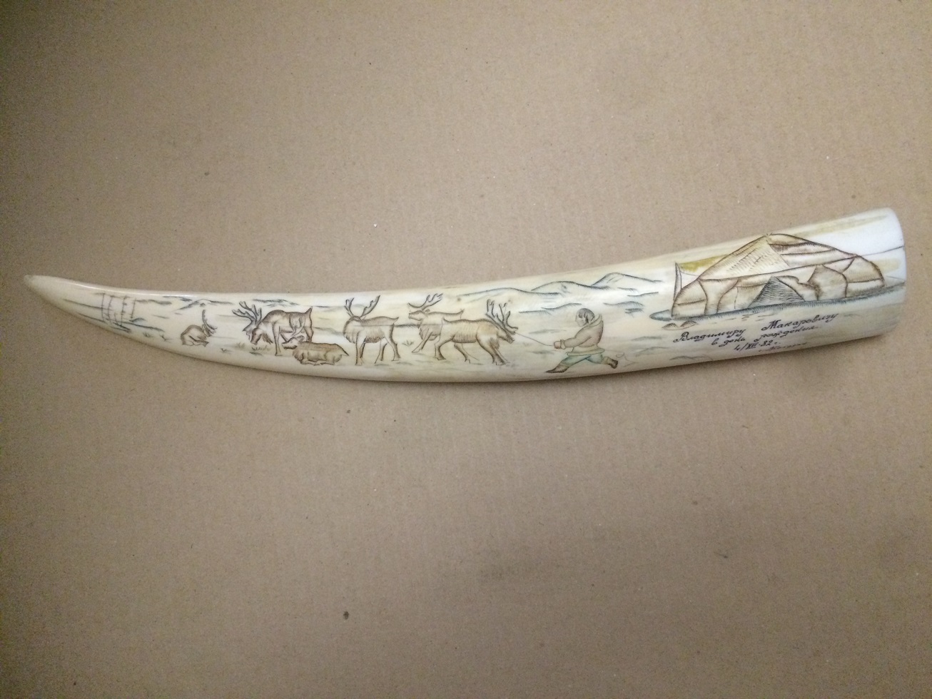 Клык моржа-сувенир с дарственной надписью