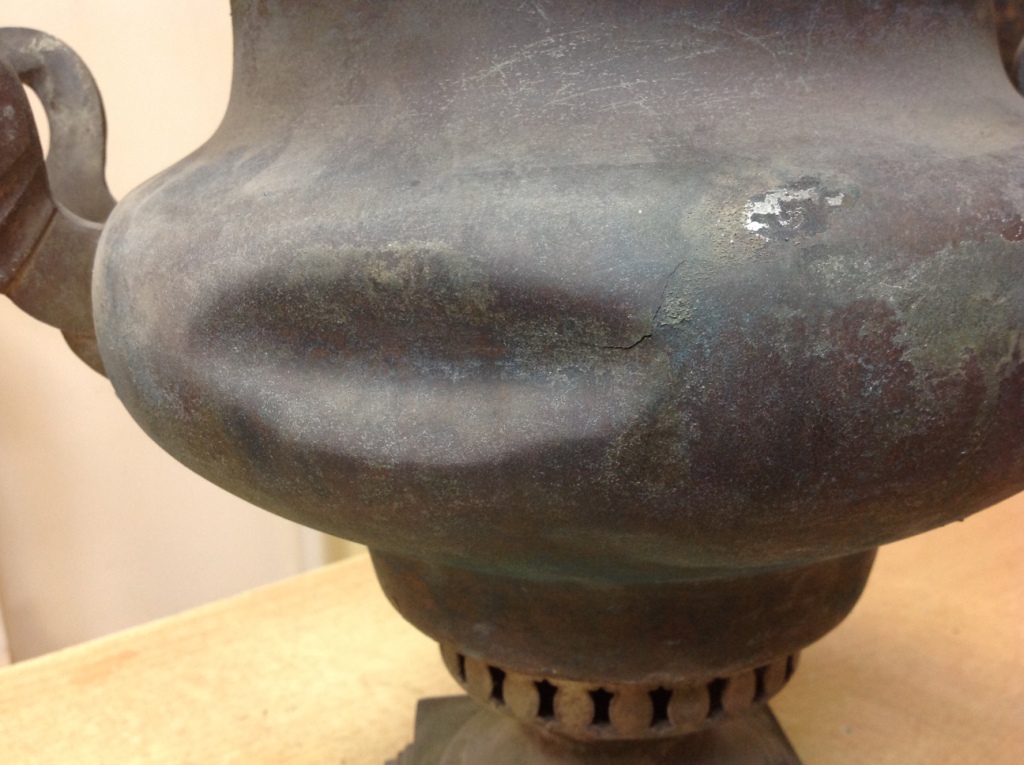 Высота 47 см. Крепкий. Сзади вмятина и где-то с сантиметр трещинка и на крышке трещина такая же... На фото показал. Предложите по РФ!