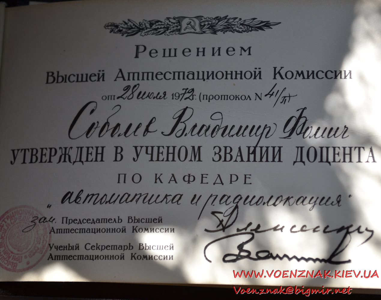 Диплом с отличием, диплом кандидата наук и аттестат доцента