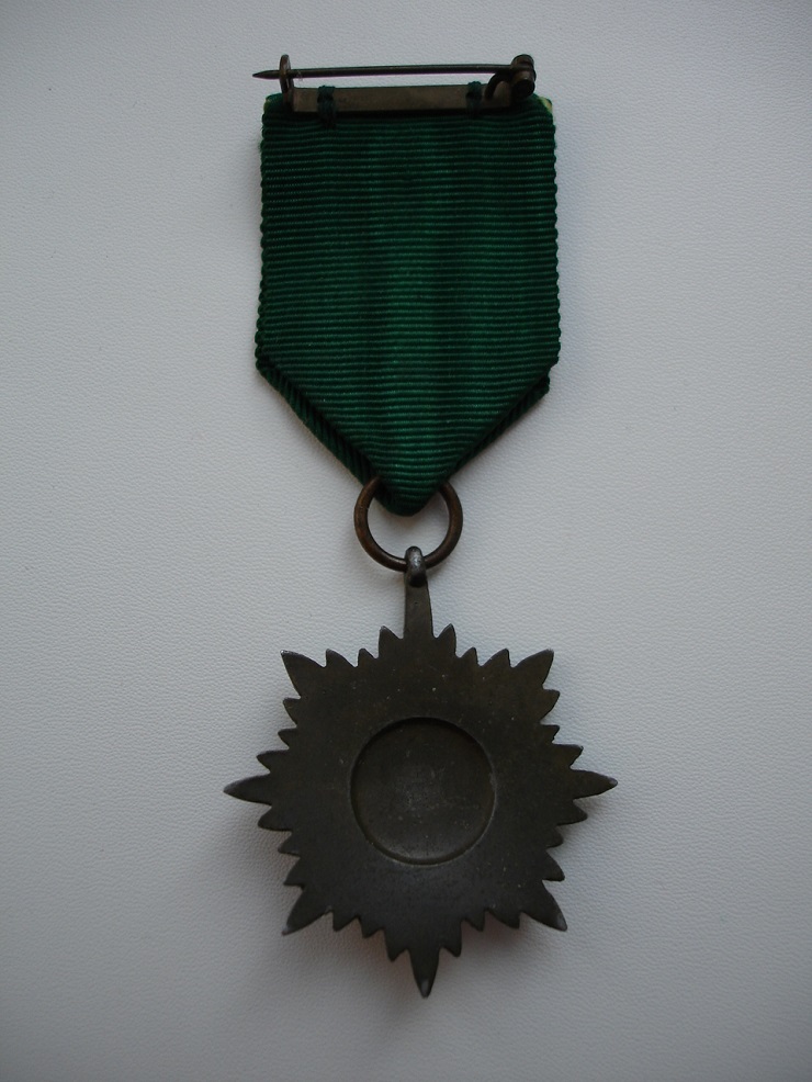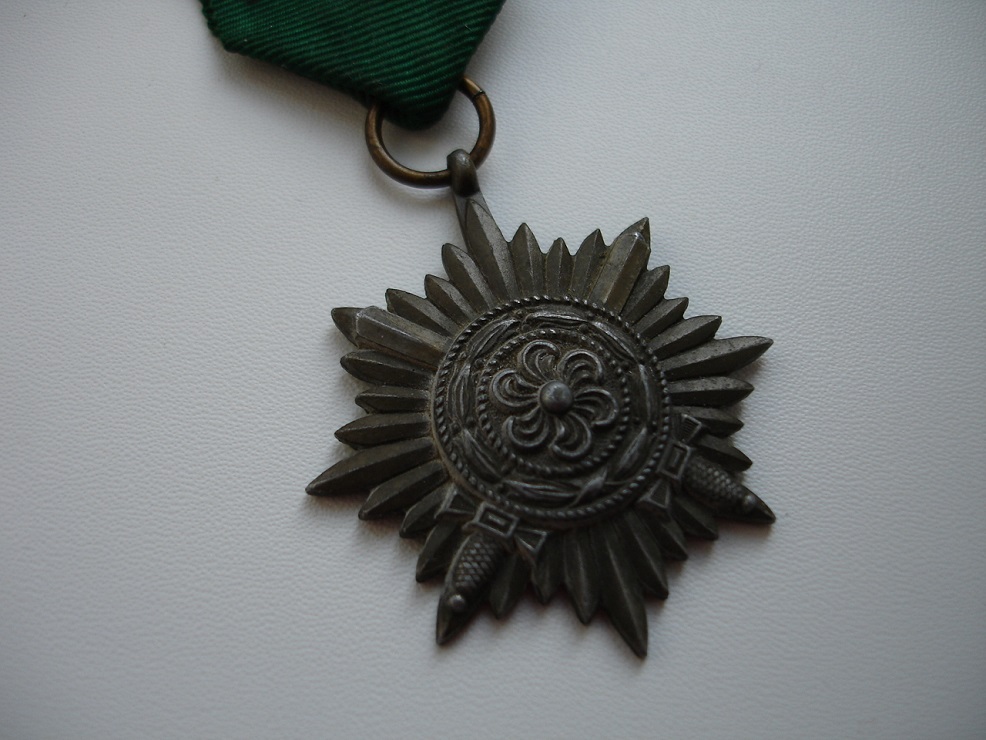 Знак "За храбрость" 2 класса для восточных народов в "бронзе" с мечами. Выполнен в цинке. Родная лента с заколкой. В отличном состоянии.