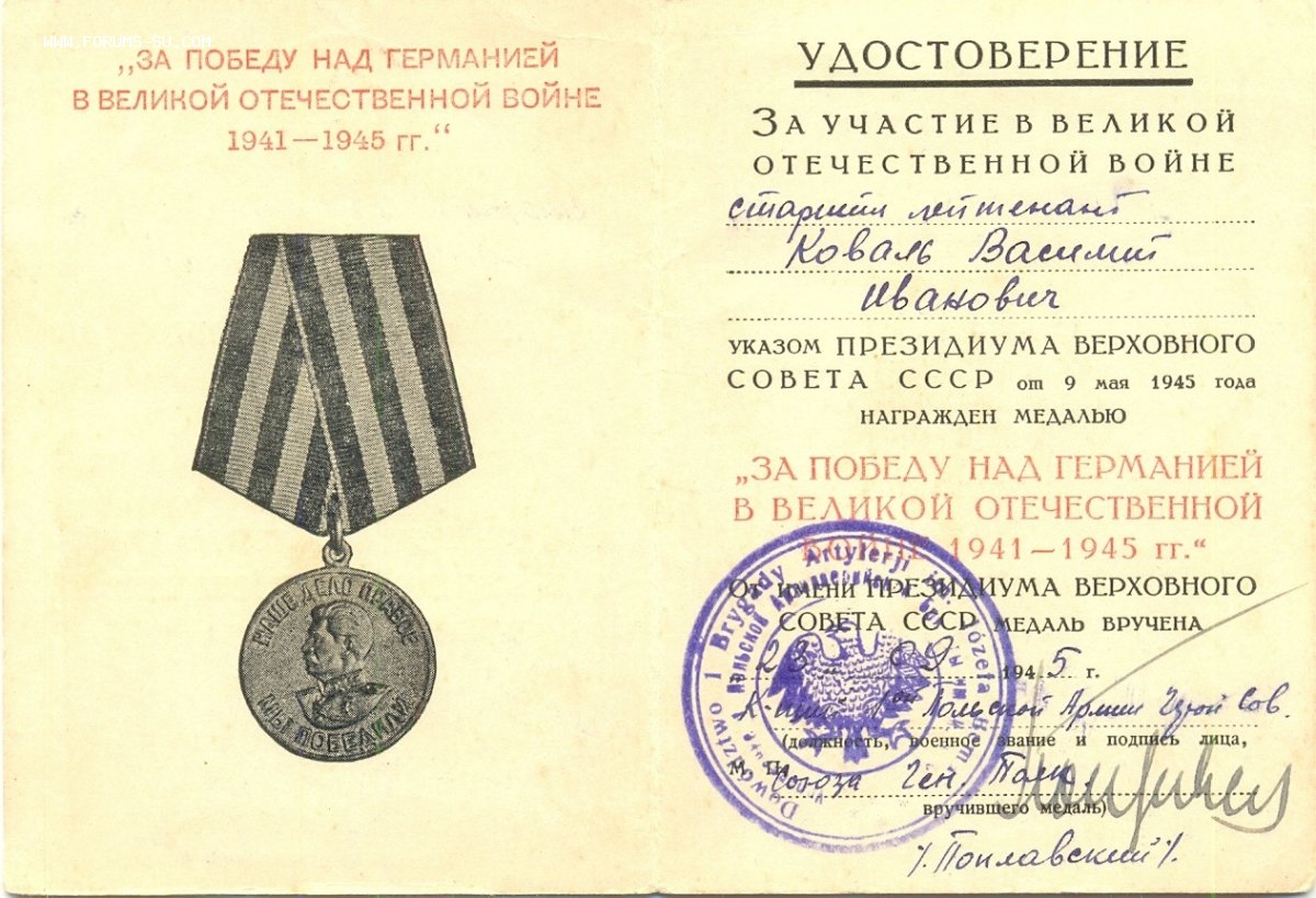 ЗПНГ - подпись Героя ГСС Генерал полковника Поплавского, печать Войска Польского