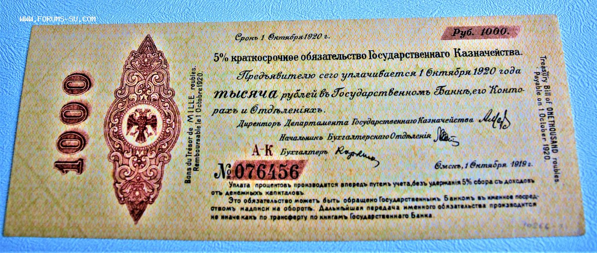 5% краткосрочное обязательство Государственного Казначейства aaaaa5290 - 10 окт 2017 14:59.11 × Мини профиль пользователя aaaaa5290 Сообщения: 23 Зарегистрирован: 11 авг 2017 20:30.06 Статус: Не в сети - 10 окт 2017 14:59.11 #6123216 Правительство Колчака состояние идеальное для вытянутой банкноты предложите Фото