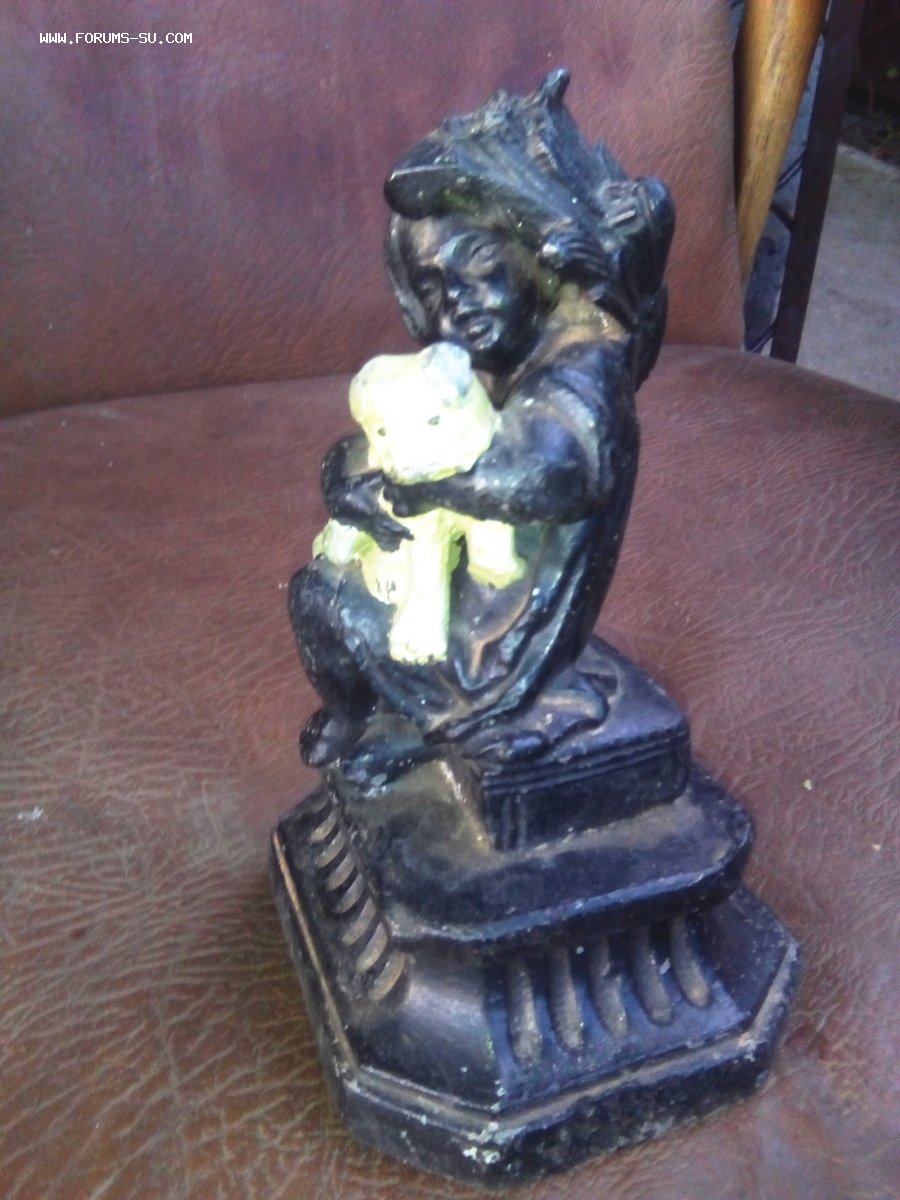 Помогите пожалуйста определить что это? цветок на верху обломан, нутро залито гипсом. Клеймо на постаменте полустерто но похоже на большие римские цифры.