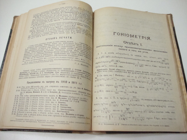 № 77. Колянковский Д.П. Полные решения всевозможными способами и подробные объяснения всех 843 тригонометрических задач В. П. Минина. Издание Козловского. Киев. Тип. Императорского университета св. Владимира. 1910г. 115 стр. Твердый переплет, увеличенный формат.