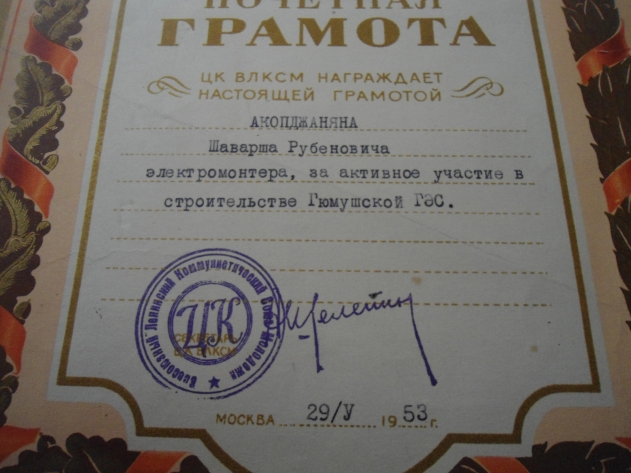 ROS99 писал(а):За высокие производственные показатели, достигнутые в соц. соревновании на строителсьстве ГЮМУШСКОЙ ГЭС.