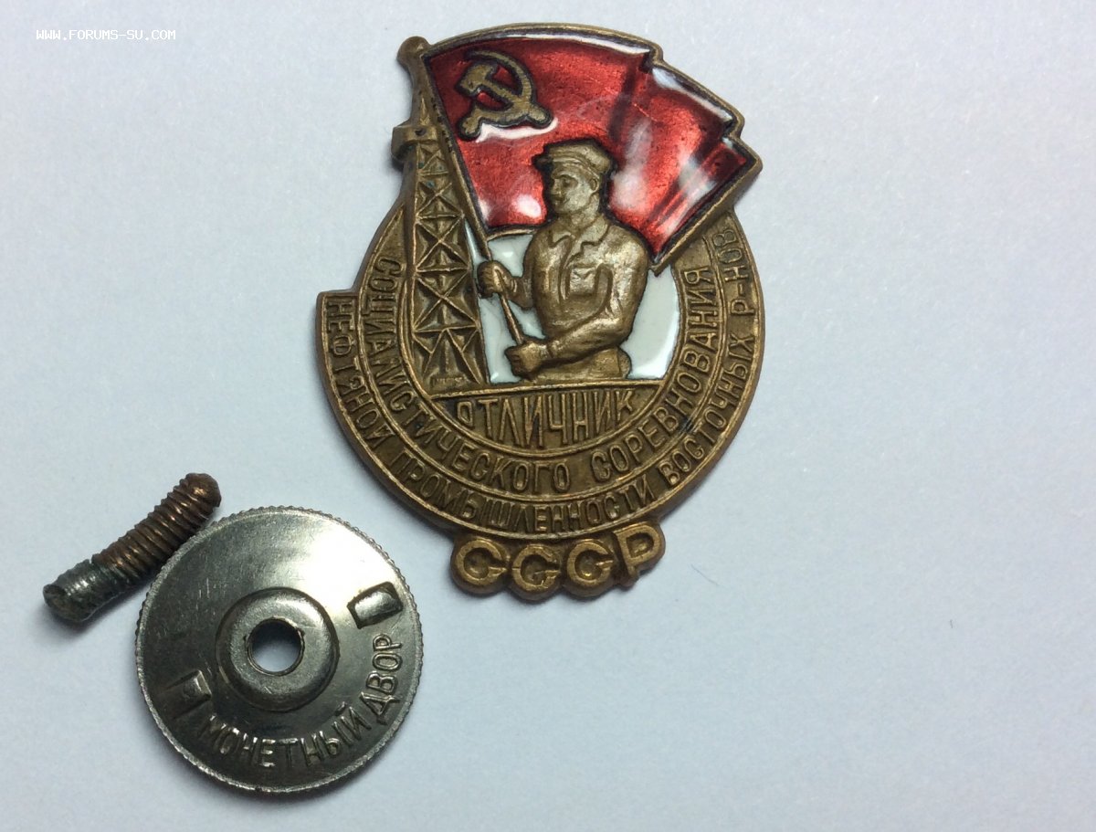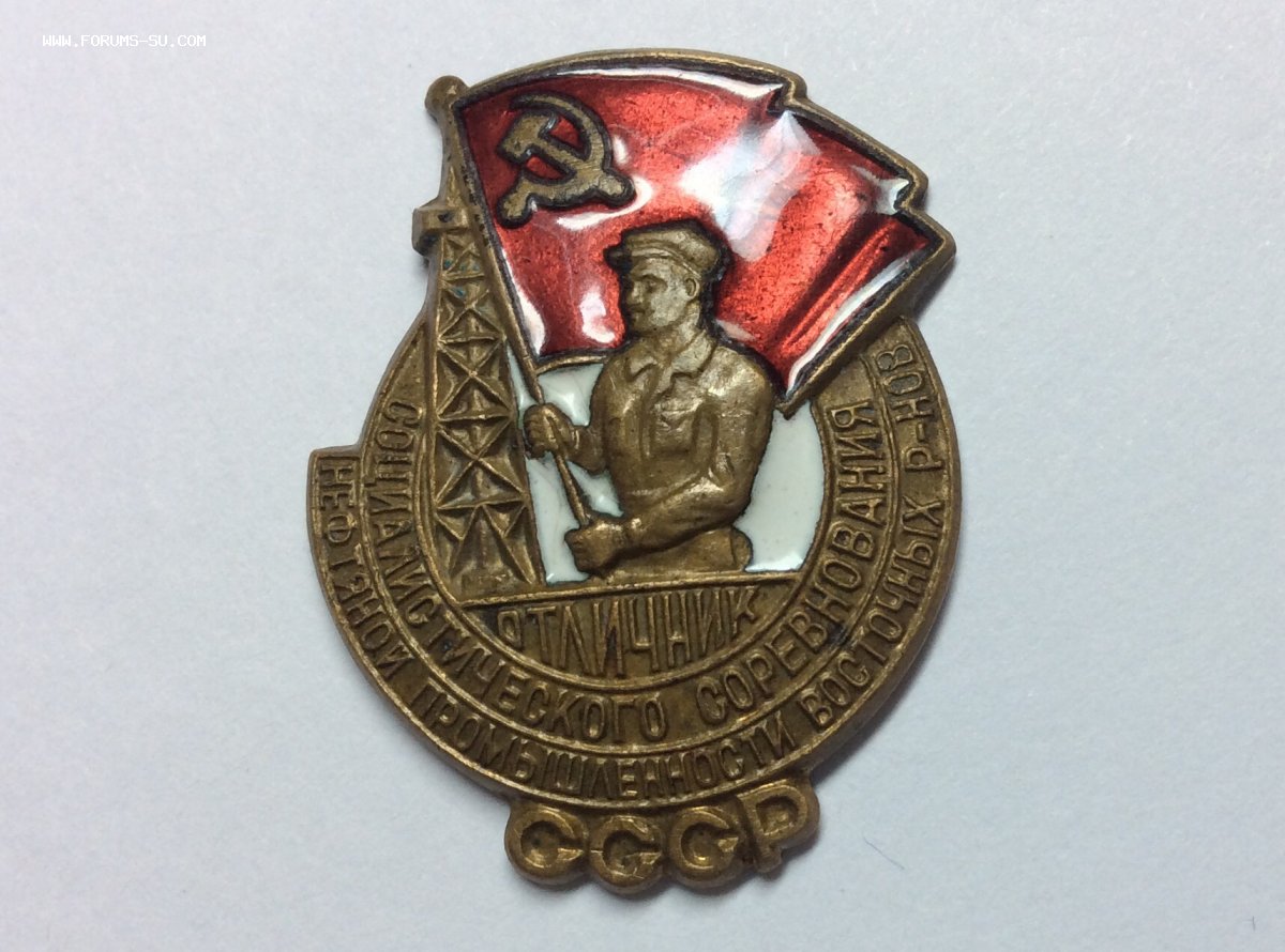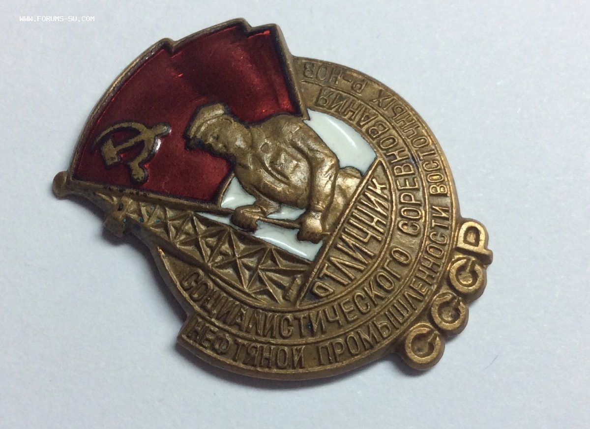 Красная эмаль цела. Белая эмаль за спиной нефтяника цела. Волосяные трещины на участках белой эмали перед нефтяником, и небольшой скол белой эмали впереди внизу правого кулака нефтяника.