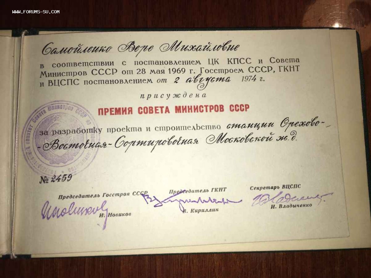 Док Премия совета министров 1974г
