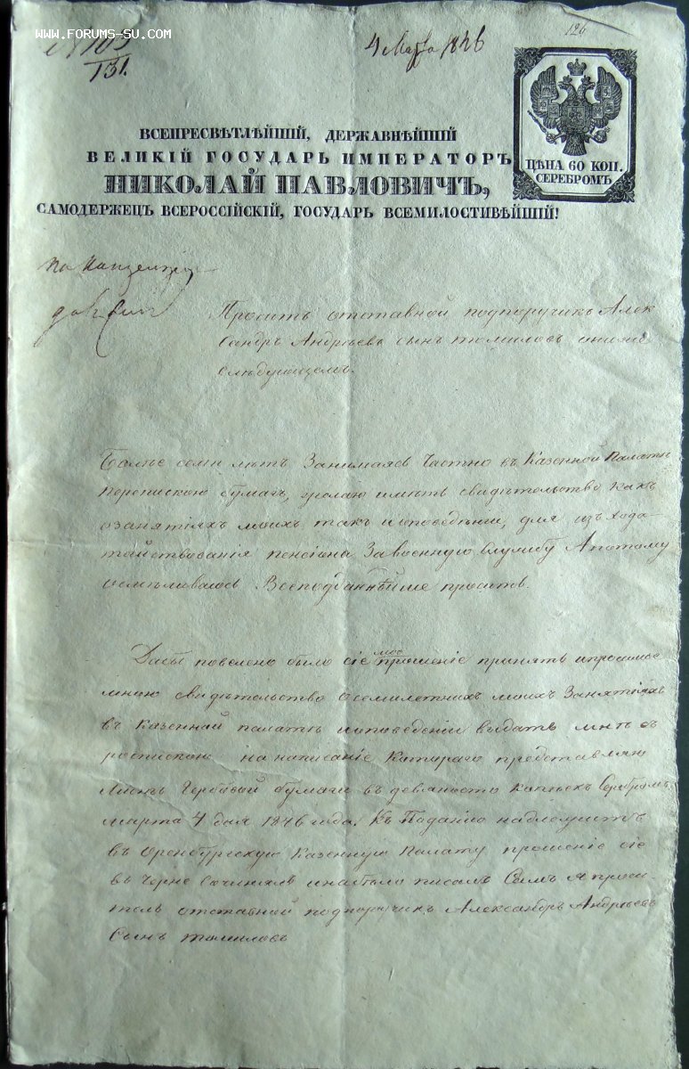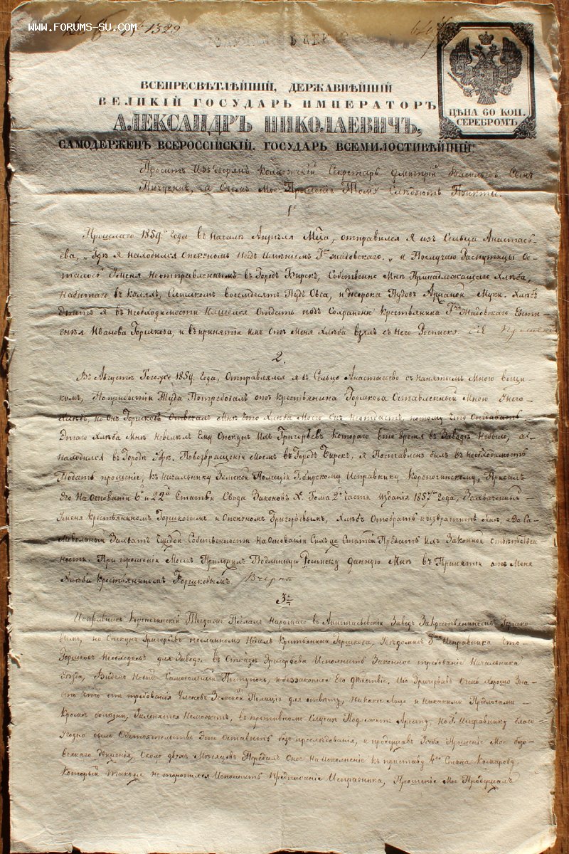 "Прошение Александру I на гербовой бумаге, 1859г"
