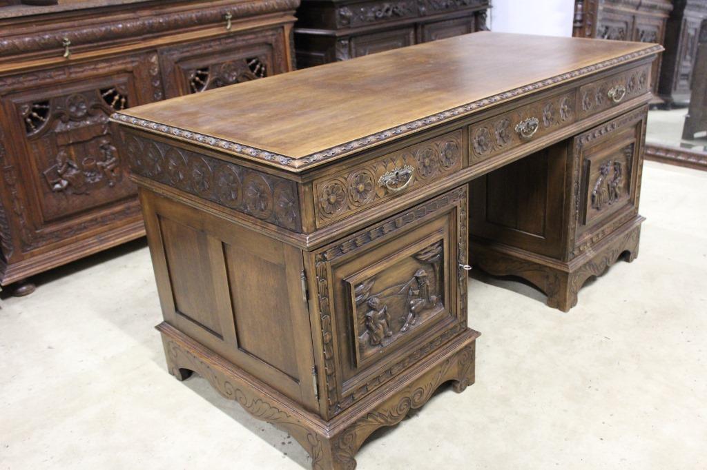 Антикварный двухтумбовый стол Бретонь . Двусторонний. Дуб.