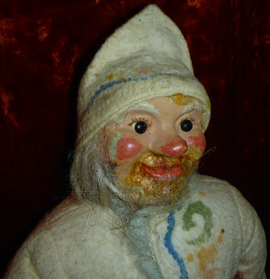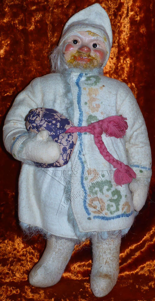 Игрушка елочная дореволюционная Дед Мороз с мешком подарков. Встречается крайне редко! Великолепное коллекционное состояние! Высота 35 см. Оригинал.