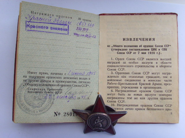 КРАСНАЯ ЗВЕЗДА № 1653660 с ДОКУМЕНТОМ