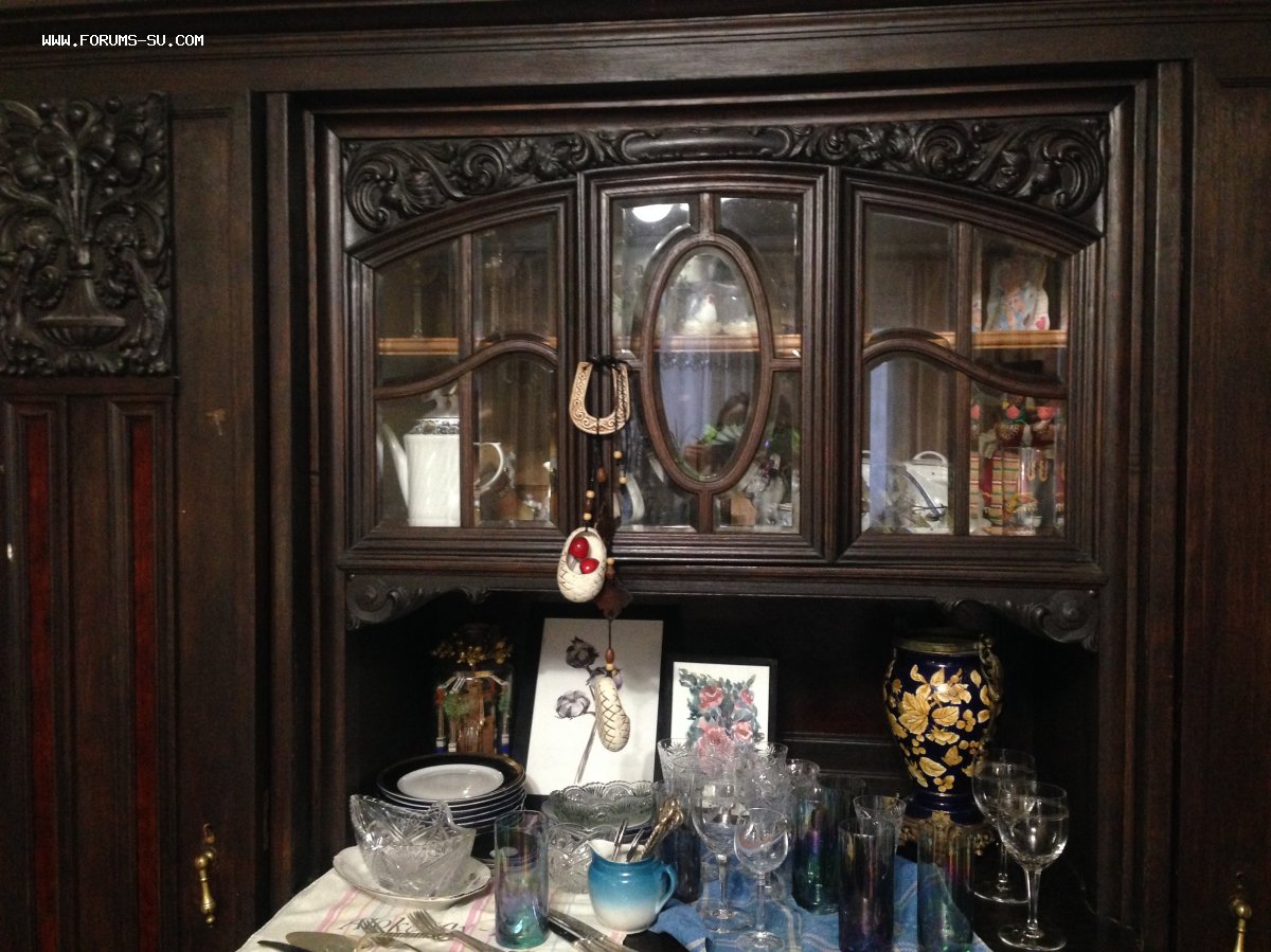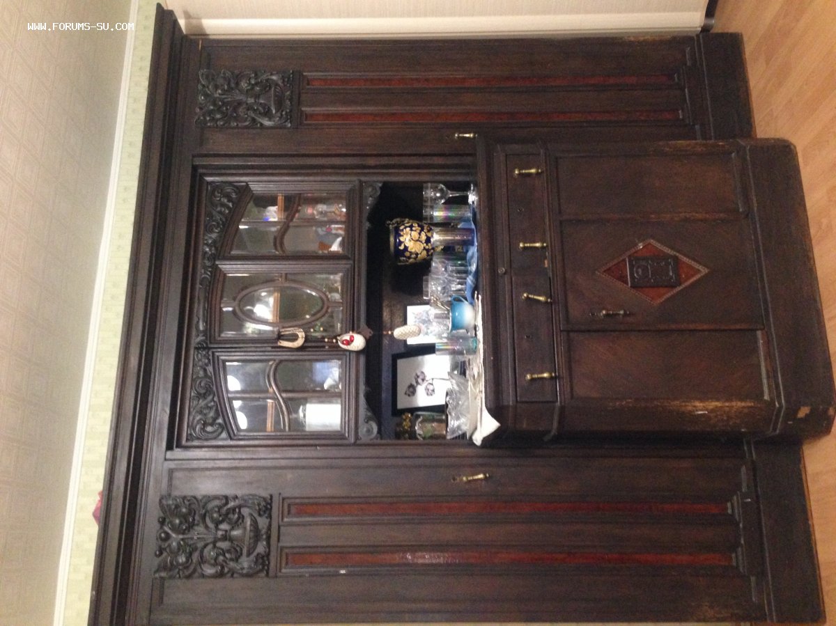 Антикварный шкаф-буфет в хорошем состоянии, конец 19-нач.20 века. Дуб, наверное. Все работает, все элементы на месте. Находится в 36 км. По Киевскому ш., пос. Селятино. Хотел бы 80000-85000 р., но готов к встречным предложениям.