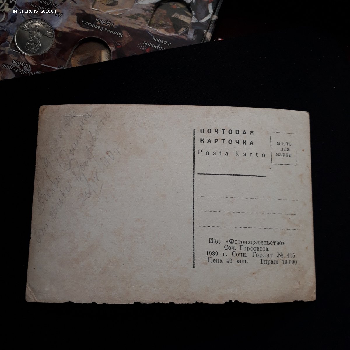 Надпись на двух открытках.От семьи Островского 1940г. Dzema - 01 дек 2017 15:09.22 × Мини профиль пользователя Dzema Звание: Внимание! Проблемный продавец! Сообщения: 1714 Зарегистрирован: 06 ноя 2016 21:25.38 Статус: Не в сети - 01 дек 2017 15:09.22 #6149665 Кто из семьи подписывал не знаю.По РФ.Надпись:На память Нели Осипенко от семьи Островского 1940г. Фото