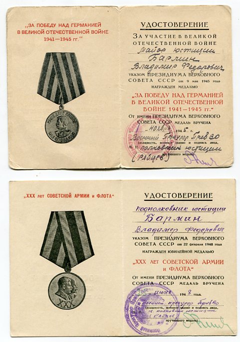 Орденские книжки, удостоверения к медалям, Грамоты, удостоверения личности, извещения, справки и другие документы, литература