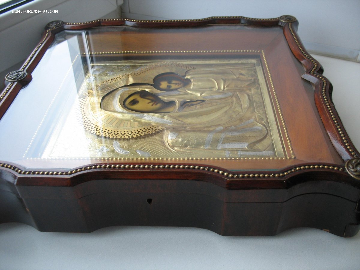 В РФ, всё родное, без вмешательств Р-р икона 27/22см Киот 39/34/8см .Замок есть, ключ утерян
