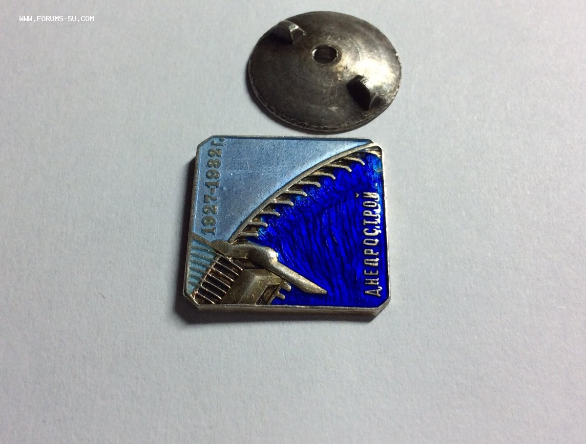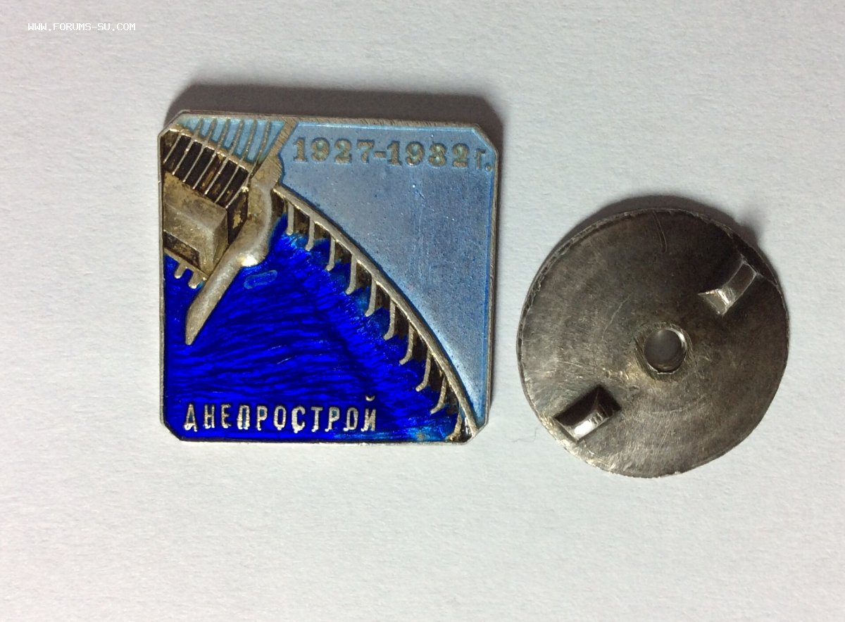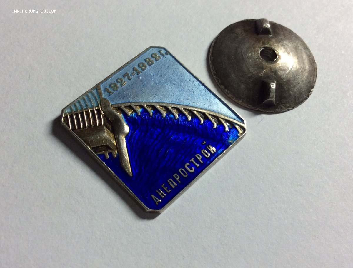 На эмалях и металле блеск. На синей эмали несколько небольших недошлифованных маленьких раковин, видимых только при увеличении. Никакой механикой там и не пахнет. Вживую знак смотрится превосходно. Винт и гайка отлично. Винт несколько под наклоном, отчего гайка накручивается вплотную к знаку одним краем, не доходя противоположным на 3мм. Этот знак даже просто с целыми эмалями достаточно редок. Особенно больное место между опорами плотины, как правило, сколы там присутствуют всегда, в большей или меньшей степени.