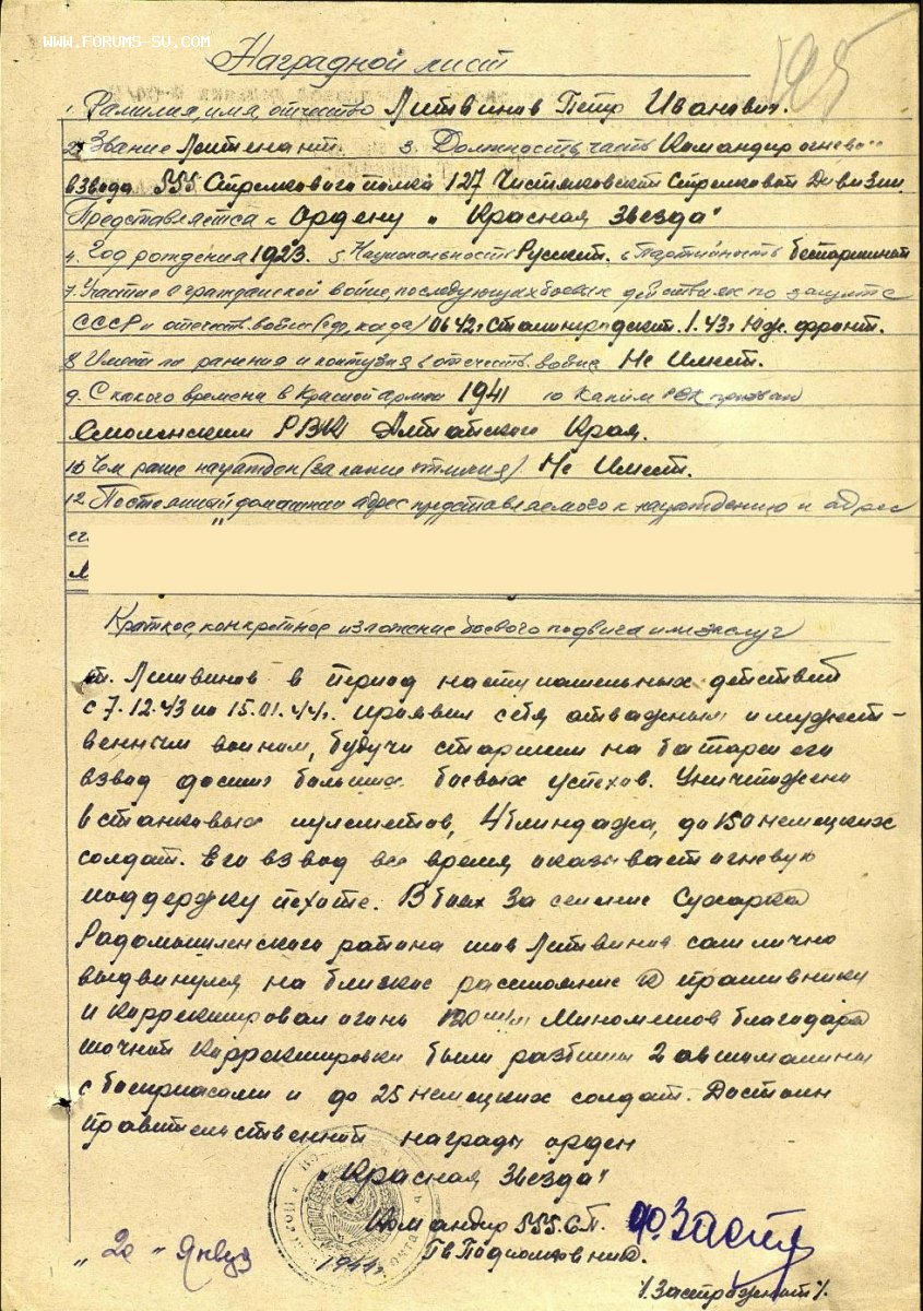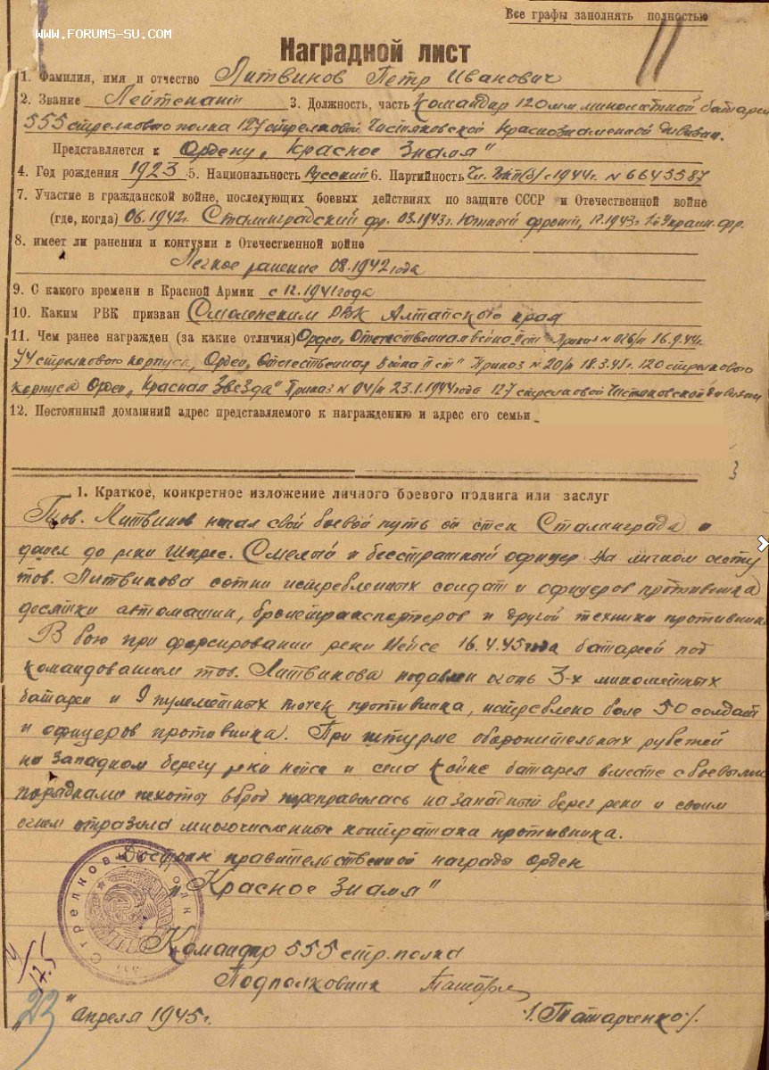 Командир огневого взвода 555 стрелкового полка.