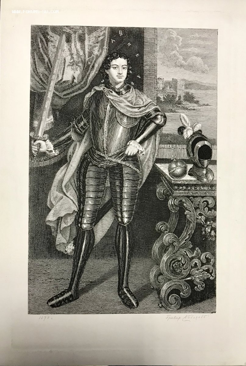 Фронтиспис – гравированный портрет Петра I работы В.А. Боброва., 1878 год., состояние отличное, проход аналогичной: