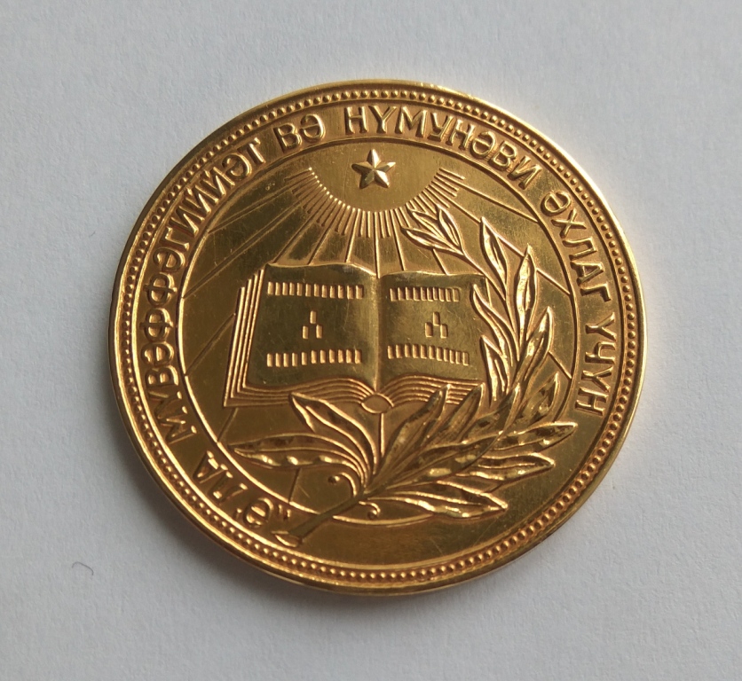 Золотая школьная медаль АзССР образца 1954 года.