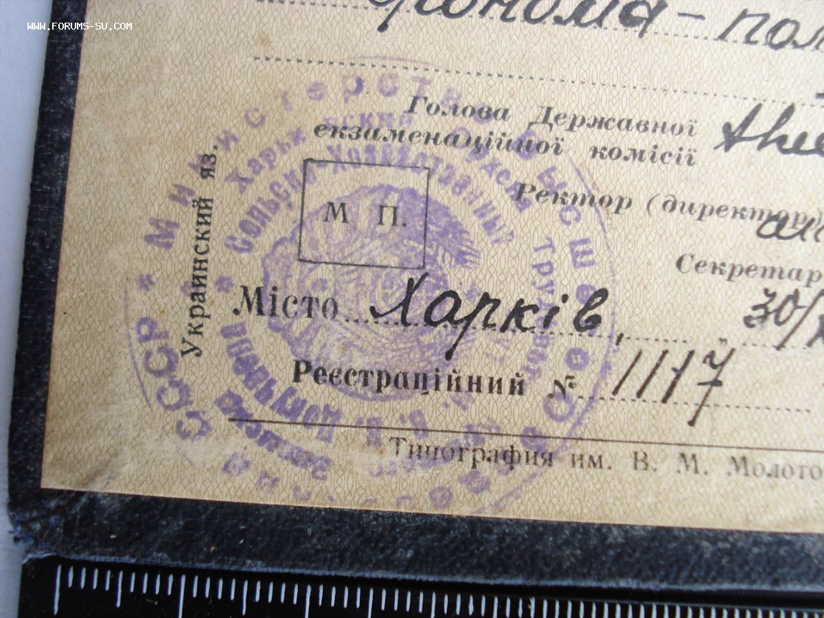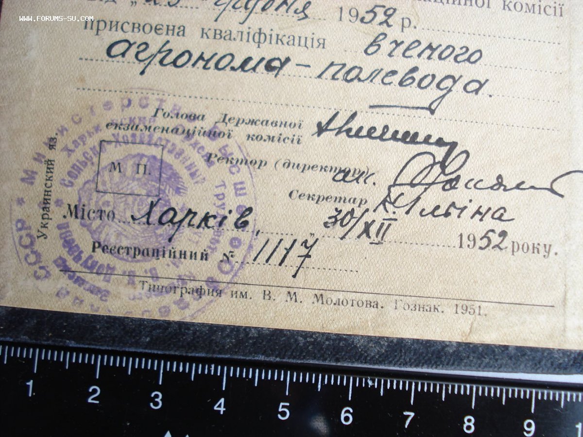 Диплом с отличием Харківського ордена Трудового Червоного Прапора с.г.інституту