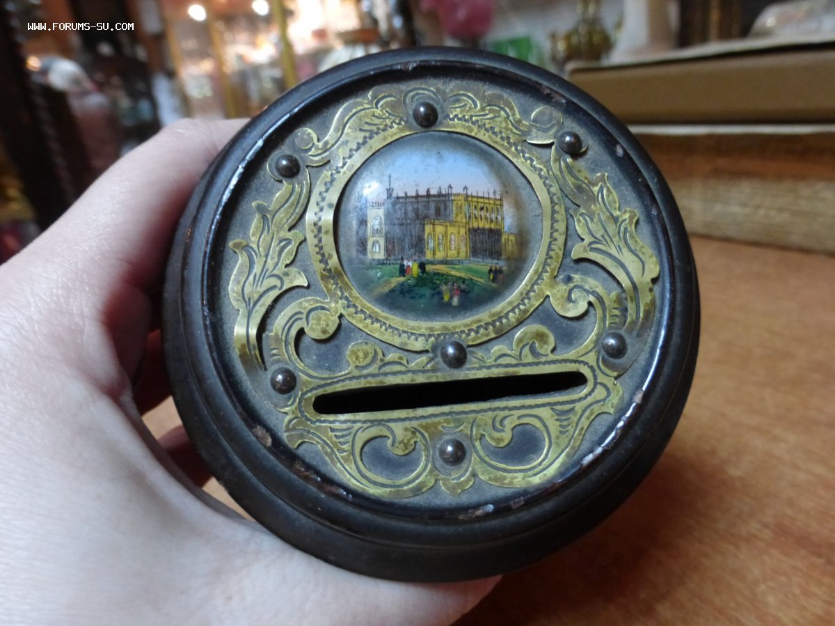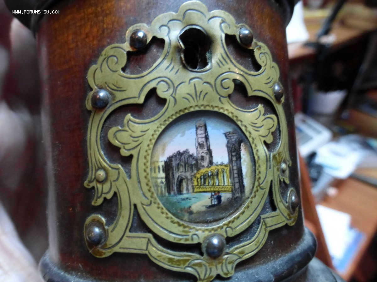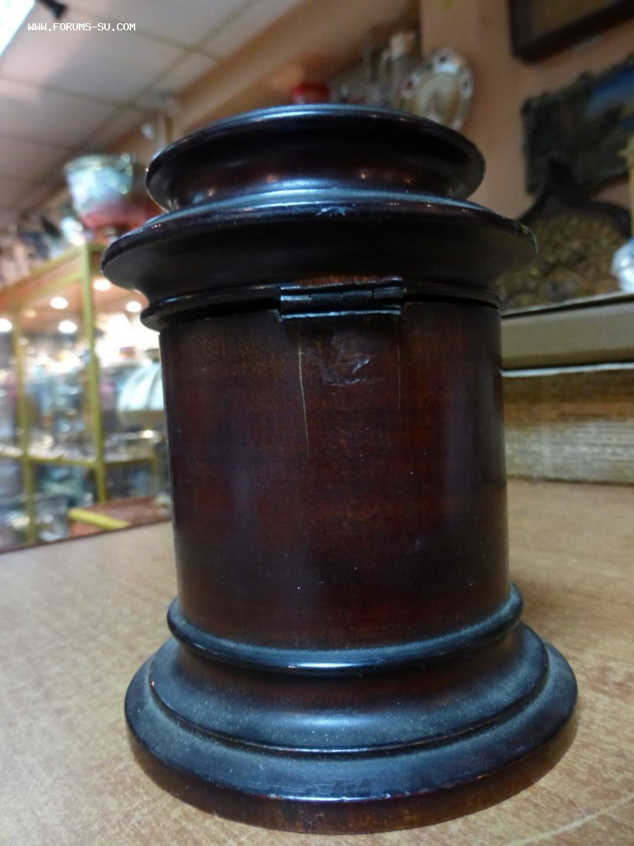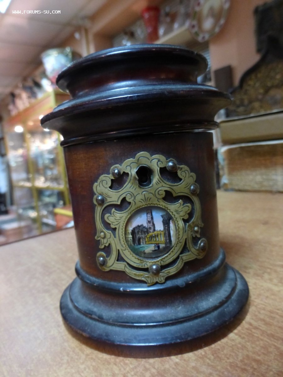 Высота 11,5 см. Украшена расписными эмалевыми вставками. Подклеена в месте, где крепится крышка. Цена 10 000 р.