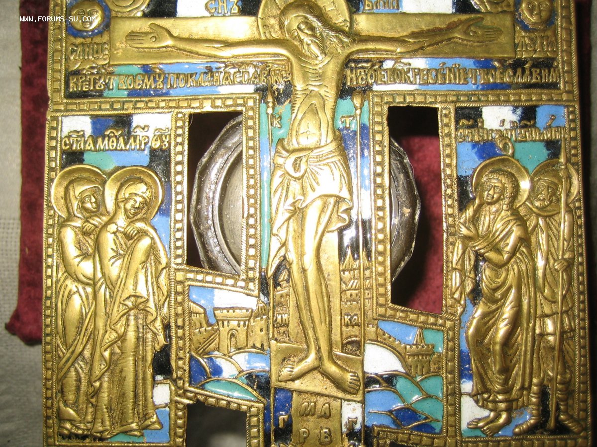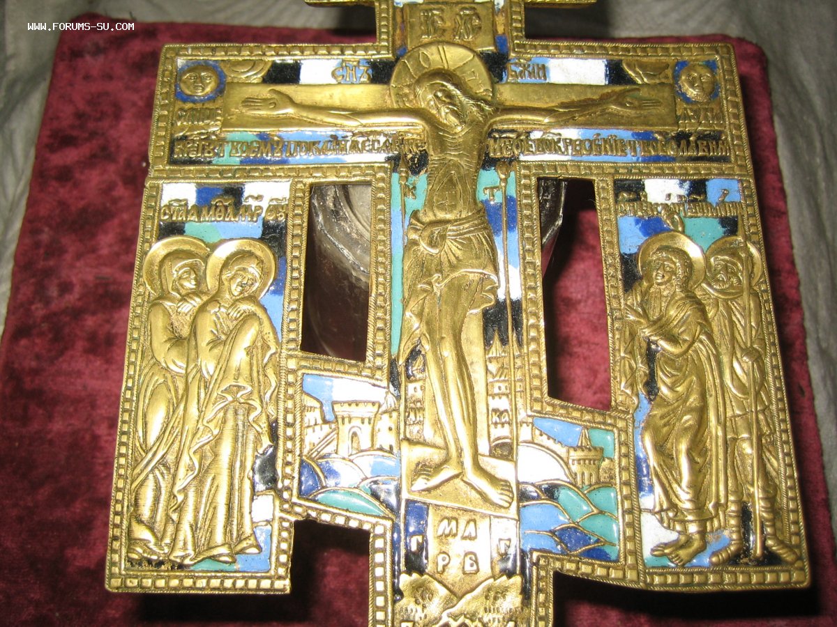 Крест киотный с Предстоящими,не частый вариант.5эмалей.
