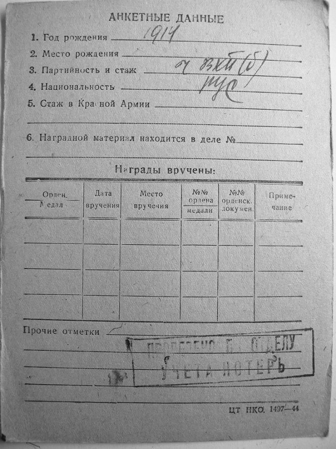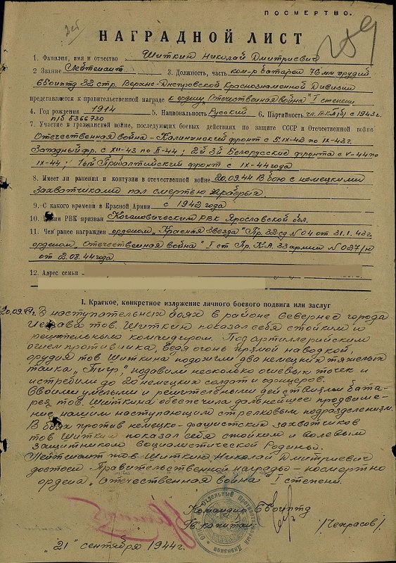 Приказ о награждении от 2 июля 1944 г., погиб 20 сентября.