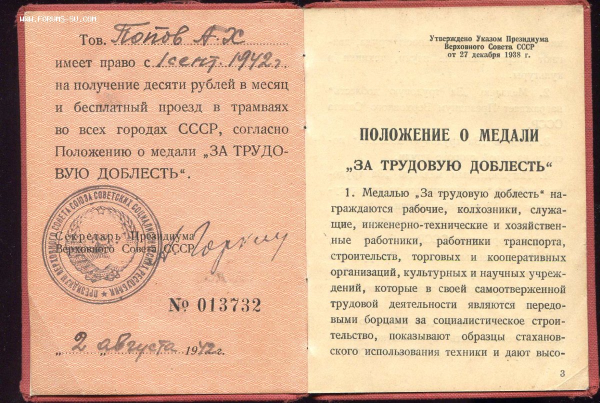 Медали Серп и Молот, За Трудовую Доблесть, За Трудовое Отличие, За Доблестный Труд в Великой Отечественной Войне,За Восстановление Предприятий Чёрной Металлургии Юга, За Восстановление Угольных Шахт Донбасса, За Освоение Целинных Земель, За Строительство БАМ, За Преобразование Нечерноземья РСФСР, За Освоение Недр и Развитие Нефтегазового Комплекса Западной Сибири, Ветеран Труда