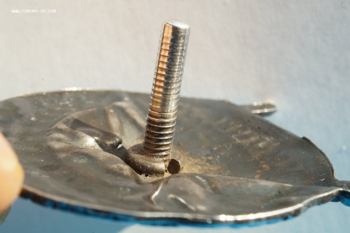 Подмазаны 2 луча, верх знамени. Нет гайки и пластины. Частично слизана резьба на 2/3 или нарощен винт