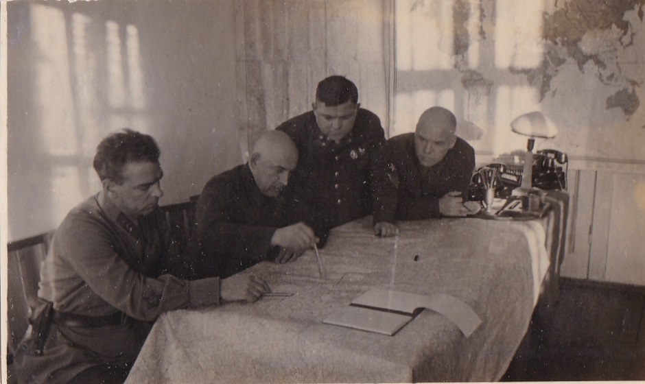 На снимке - Член ВС СЗф В.Н.Богаткин,ком-щий фронтом генерал-лейтенант П.А.Курочкин,начштаба генерал-лейтенант Н.Ф.Ватутин и Член ВС А.М.Пронин.