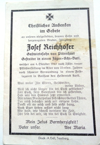 Похоронка на немецкого солдата. Комбат 56 - 18 фев 2018 07:48.36 × Мини профиль пользователя Комбат 56 Сообщения: 10024 Зарегистрирован: 26 июн 2009 03:34.09 Статус: Не в сети - 18 фев 2018 07:48.36 #6185619 Размер 11х7 смЦена-500 руб+пересылка. Фото Мой esaul_56@mail.ru