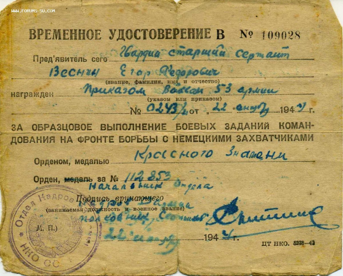 Наградной на подвиге.