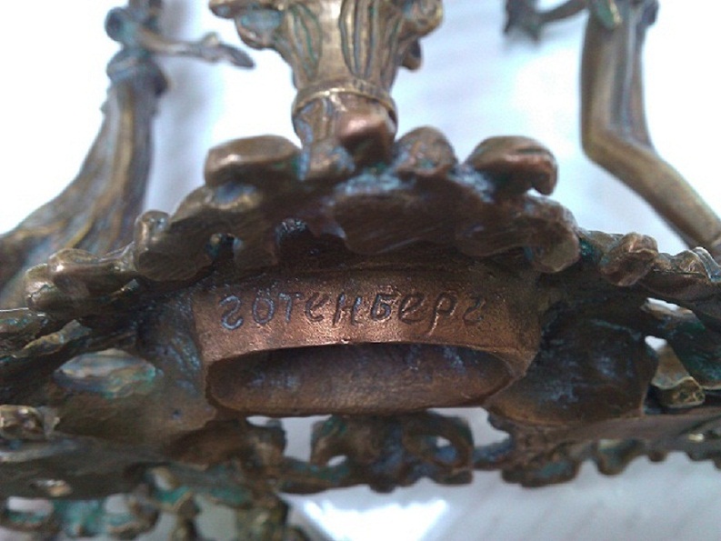 Канделябр,бронза подписная,подпись родная,период примерно:конец 18века-начало19века,я помыл его слегка-потому что патина была аж черная(создавалось впечатление когбудто чугун),все родное-без реставрации,старинная 100%(неноводел).Высота-31см.,находится на Украине,пожалуйста подскажите примерную стоимость предмета,возможна продажа.Если возникнут вопросы,с удовольствием отвечу.Мой адрес alexander7566@ukr.net